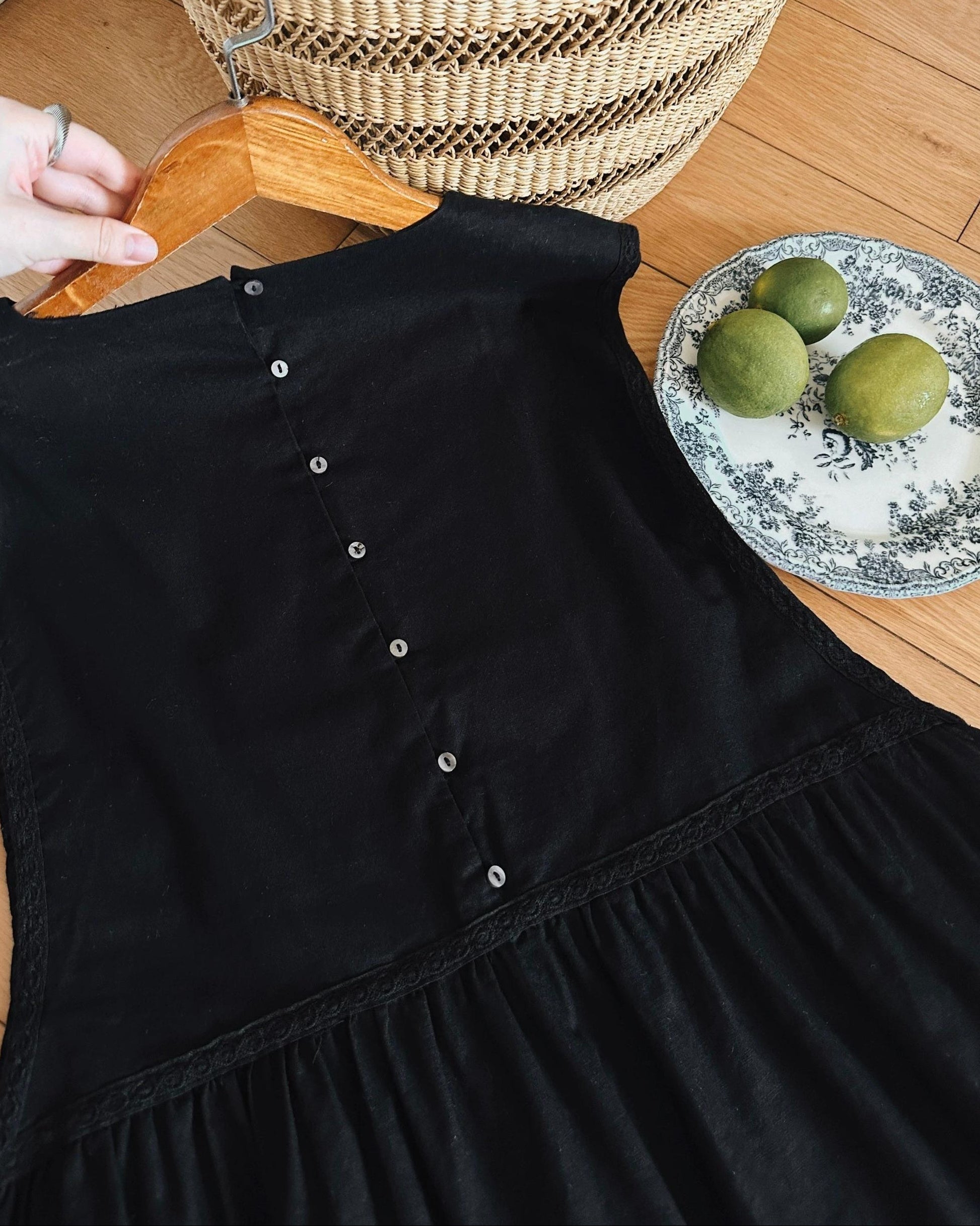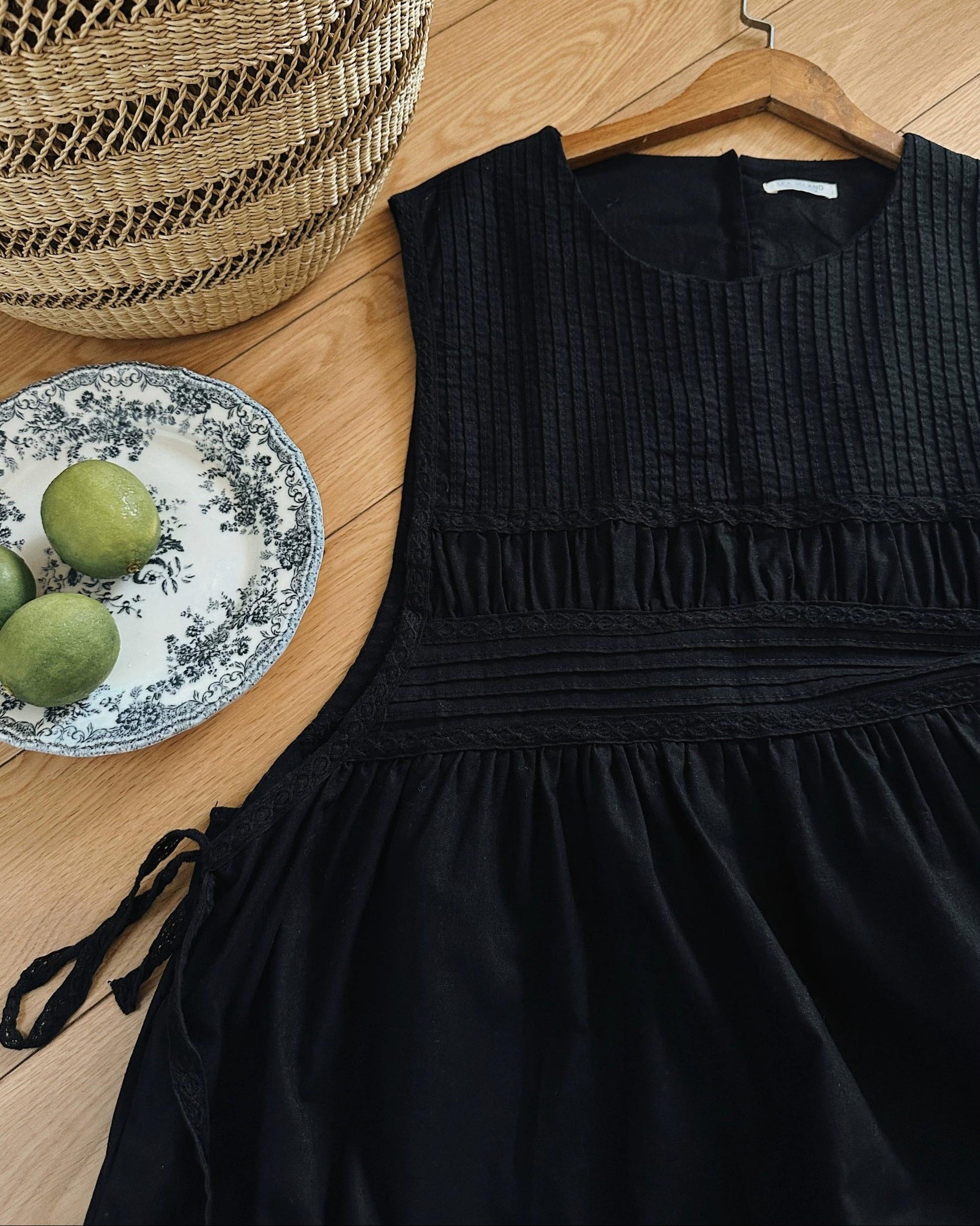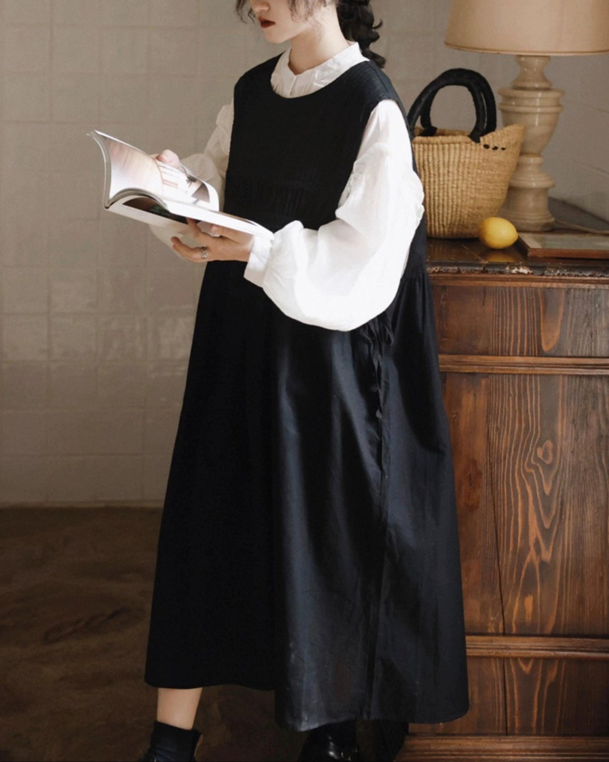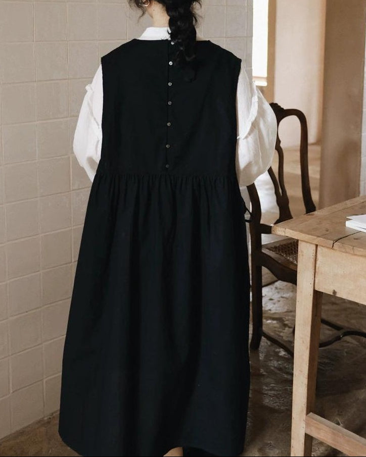 ラウンドネックレトロベストワンピースは、柔らかな質感が魅力のコットン素材を使用しています。黒のシンプルなデザインは、フレアシルエットが女性らしさを引き立て、カジュアルな場面や休日のお出かけにぴったり。胸元に施された繊細なプリーツがアクセントになり、スタイリング次第でさまざまなシーンにマッチします。日常使いにも特別な日にでも活躍するアイテムです。