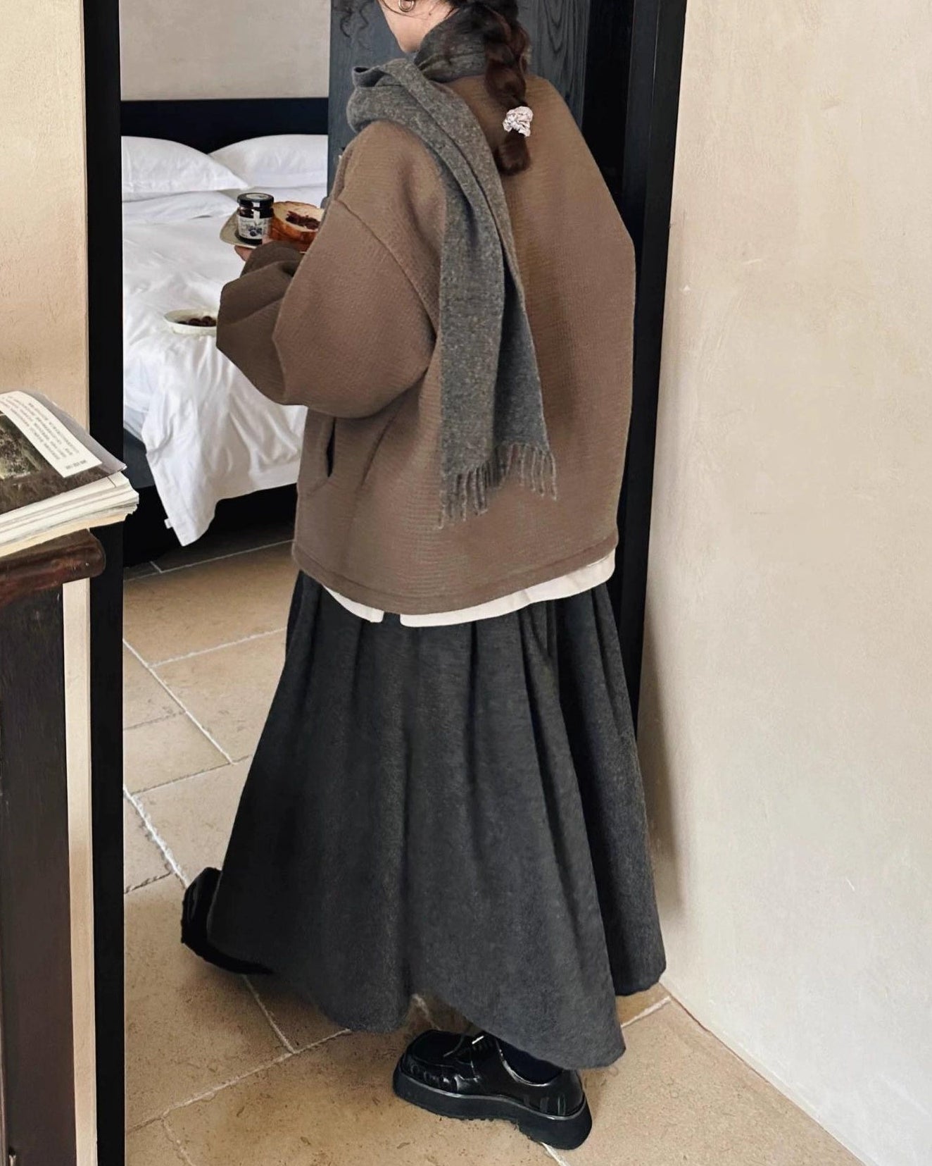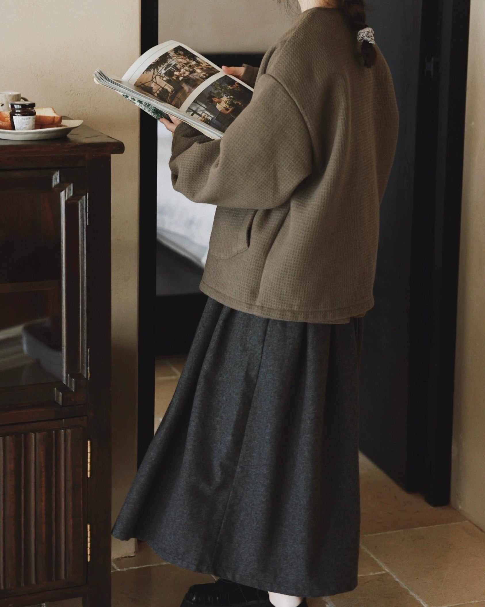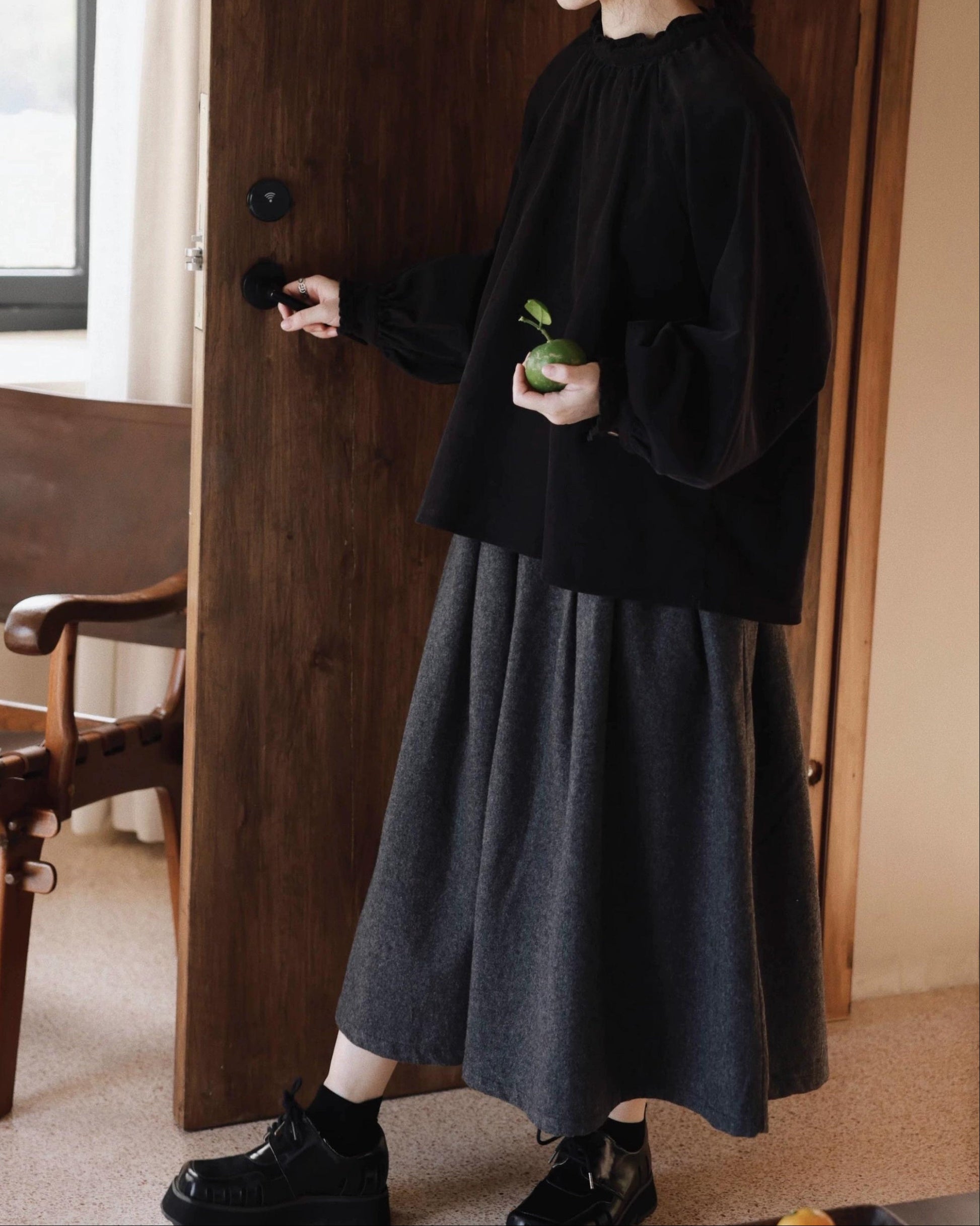 くるぶしにかかるフレアシルエットが特徴で、シンプルなデザインがさまざまなスタイルにマッチします。上品なダークグレーの色合いは、カジュアルからフォーマルまで幅広いシーンで活躍。ウエストはゴム仕様で、快適な着心地を提供します。
