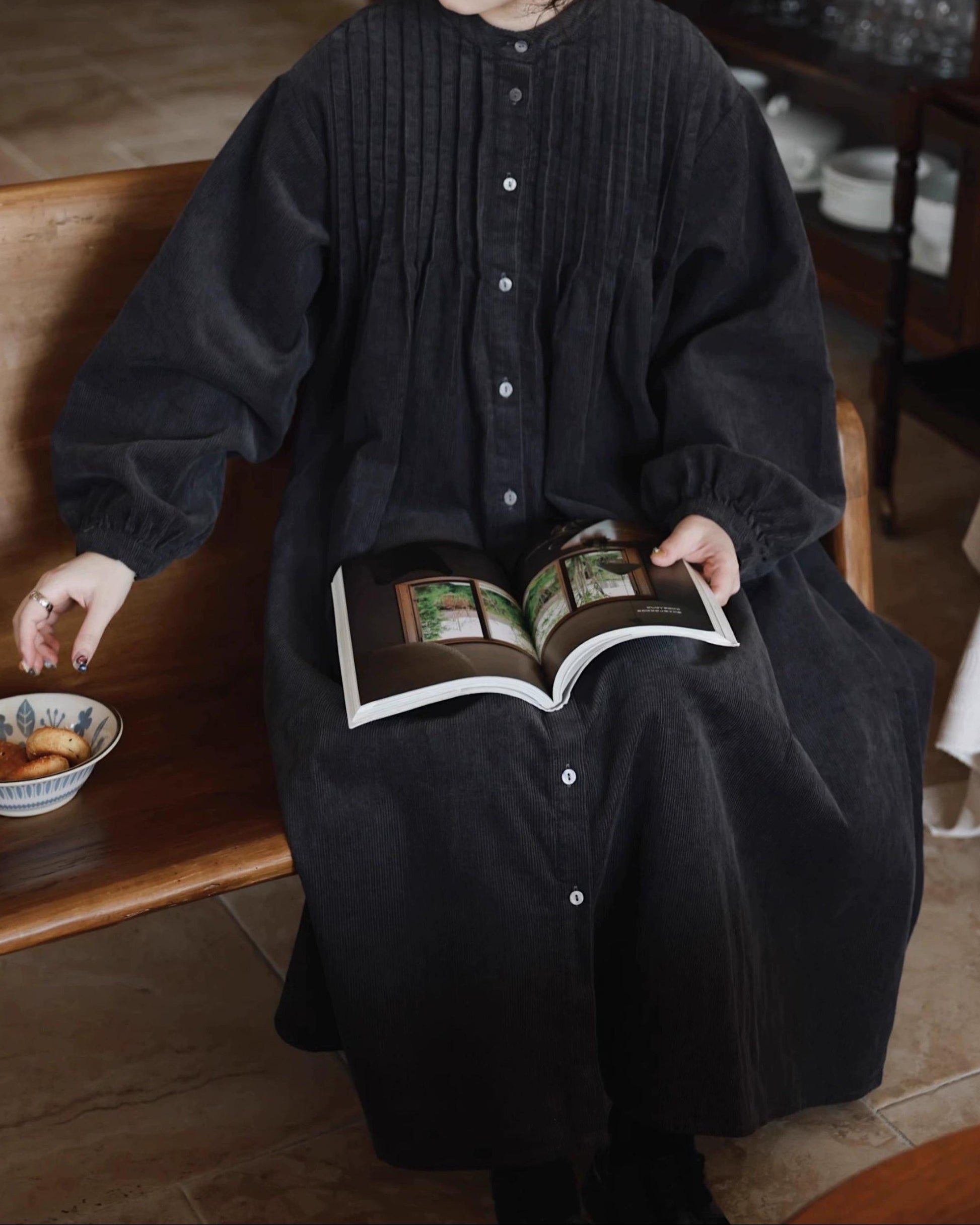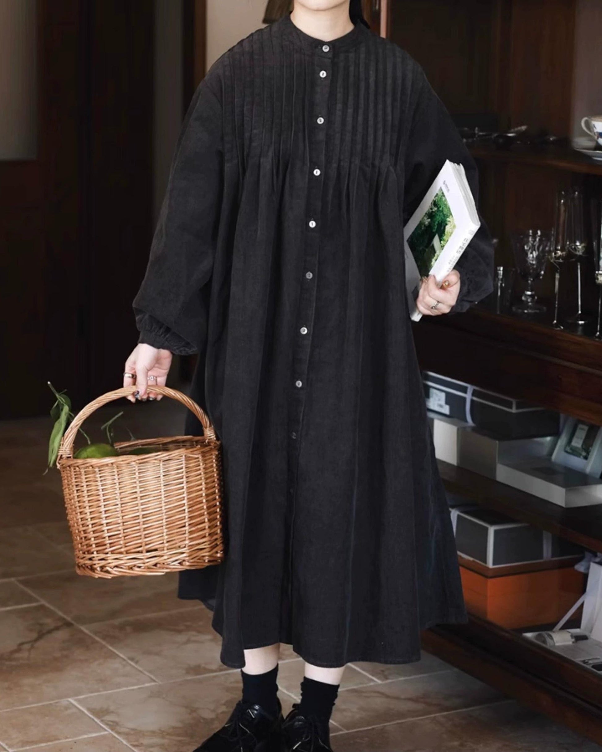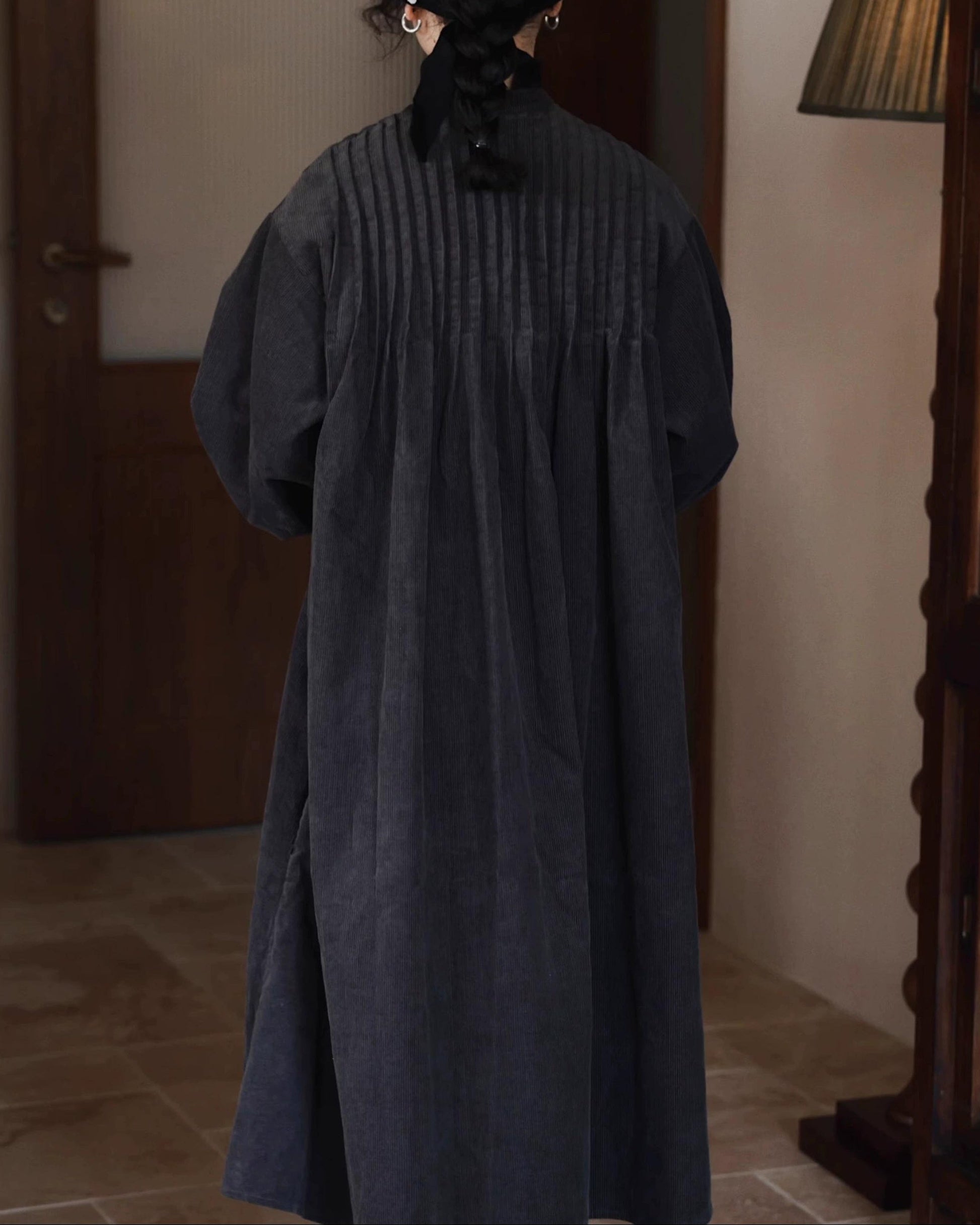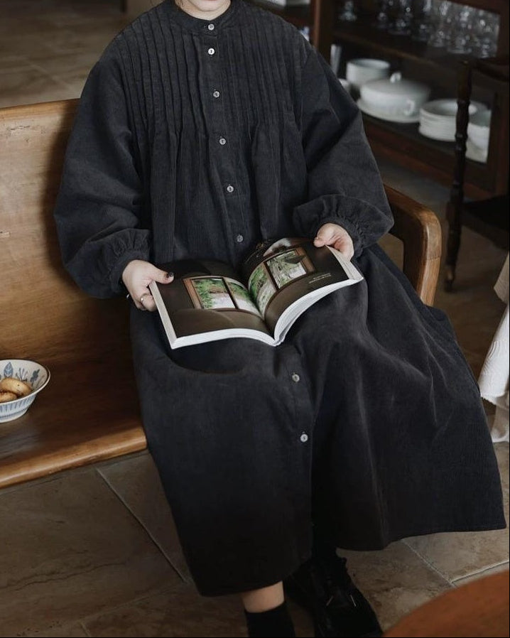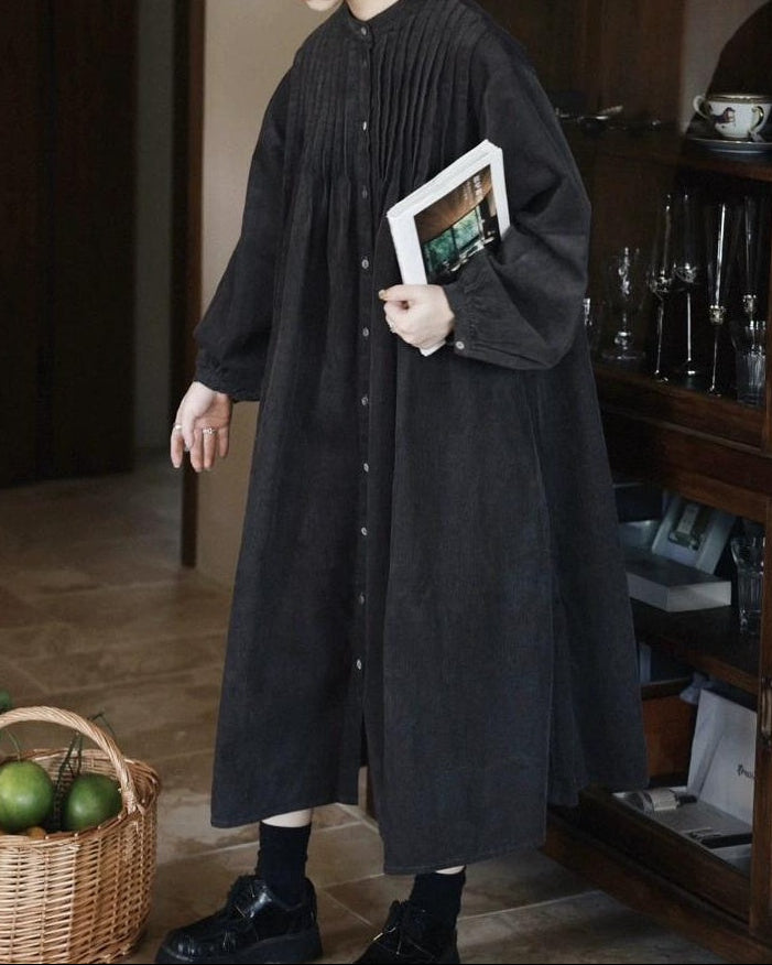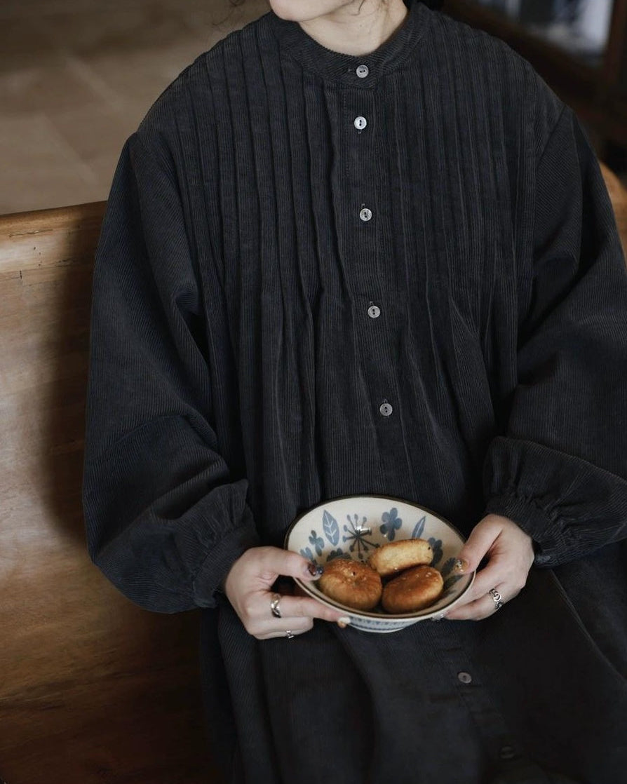 ピンタックコーデュロイシャツワンピース 10035
