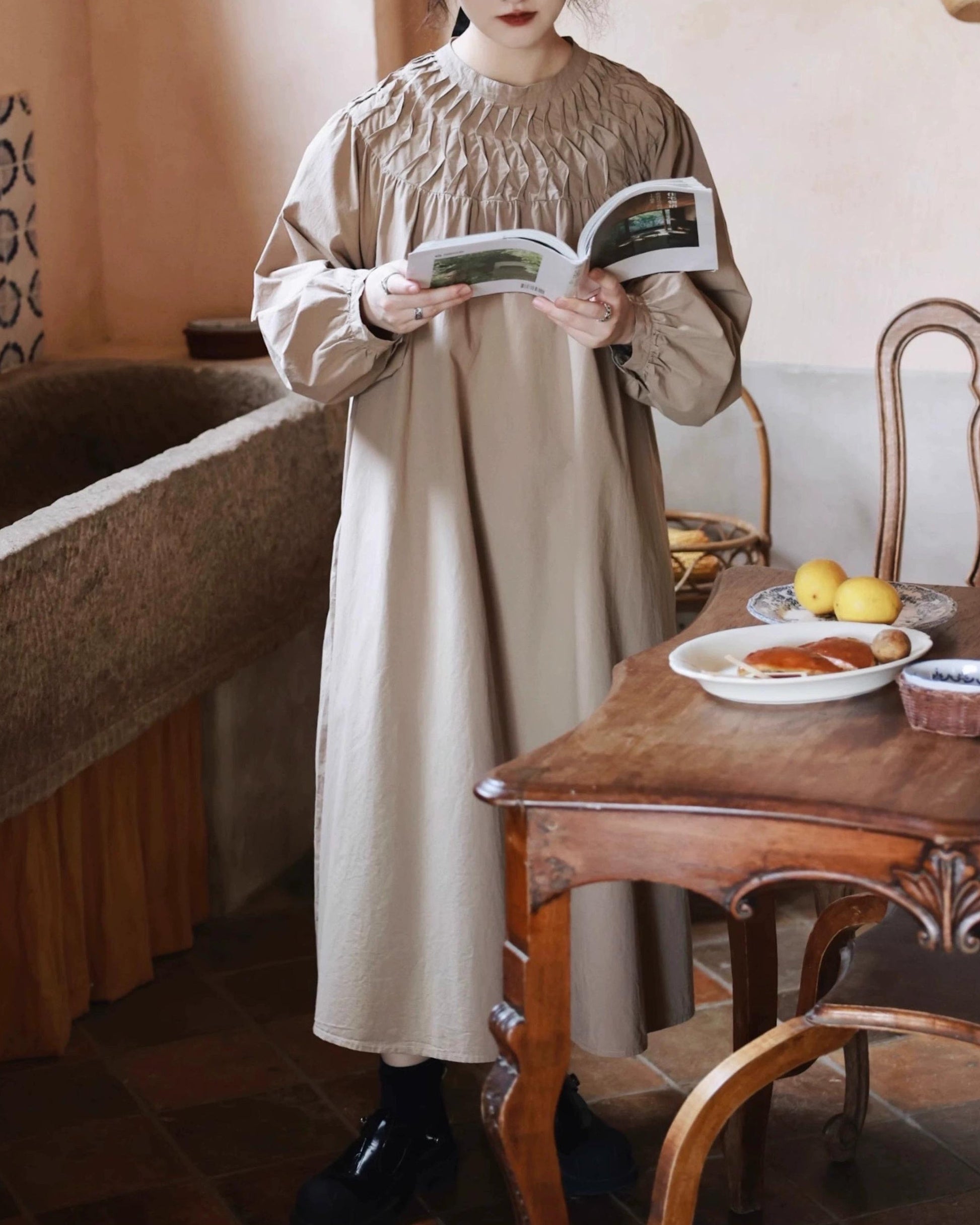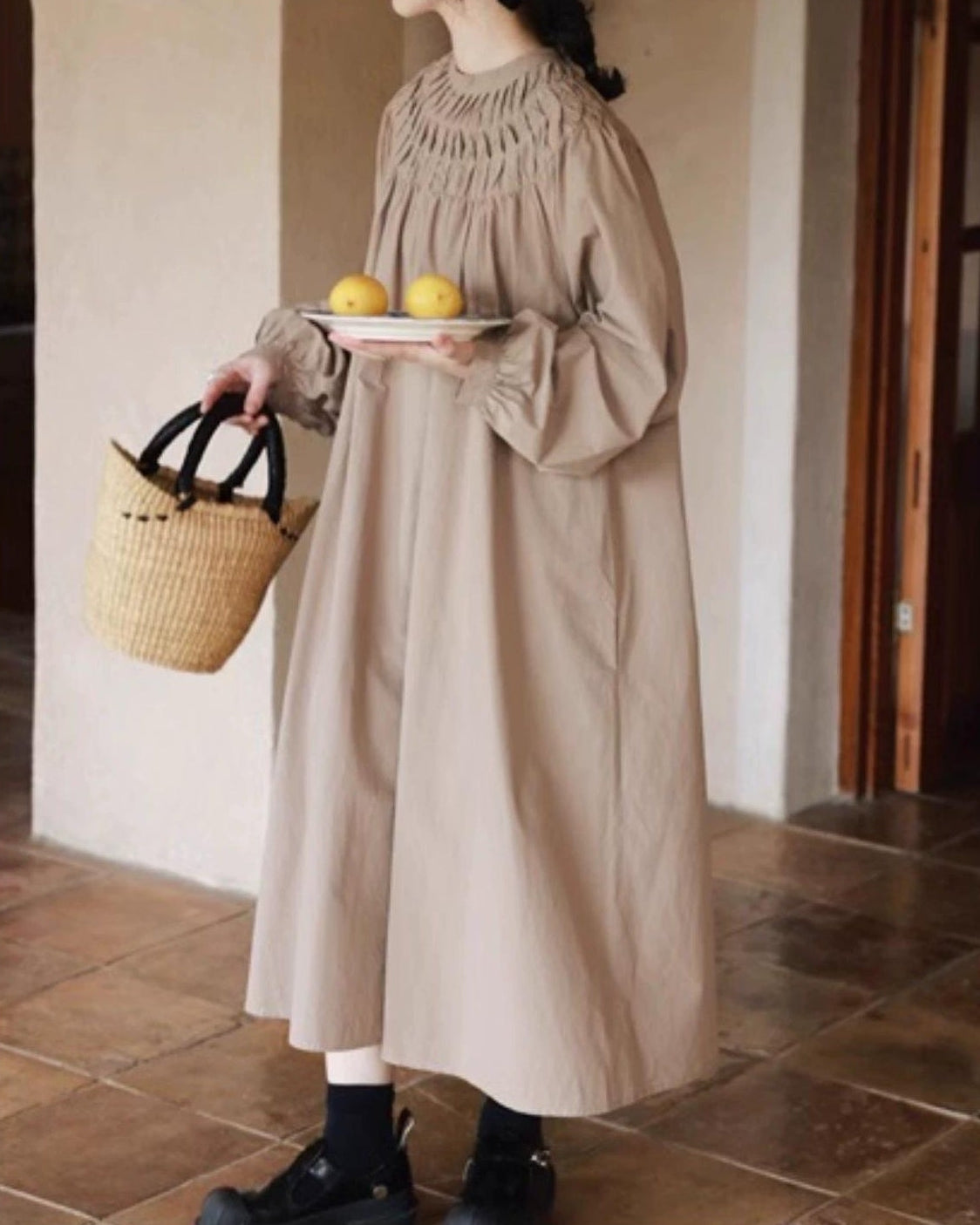 スモッキングエアリーロングワンピース 10046
