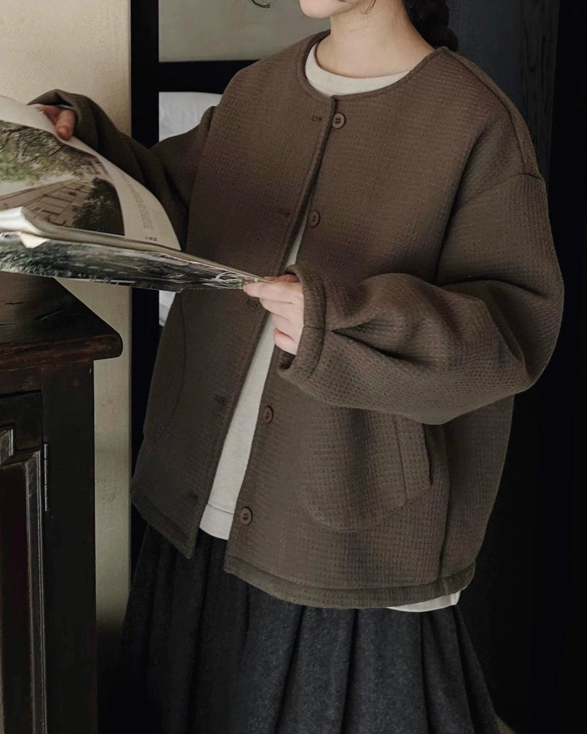 ラウンドポケットオーバーショートコート 10070