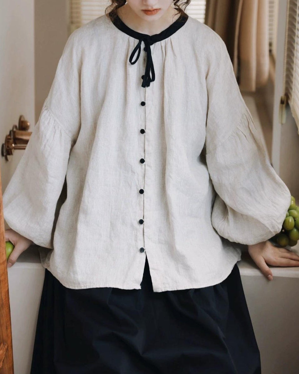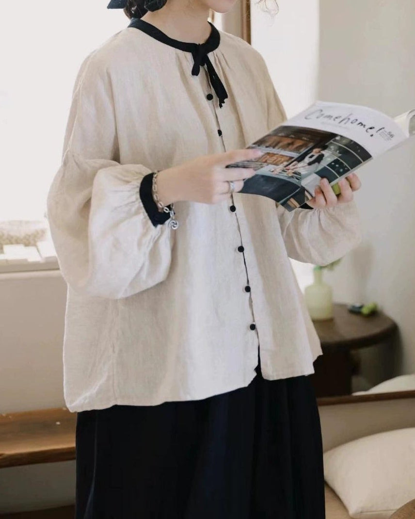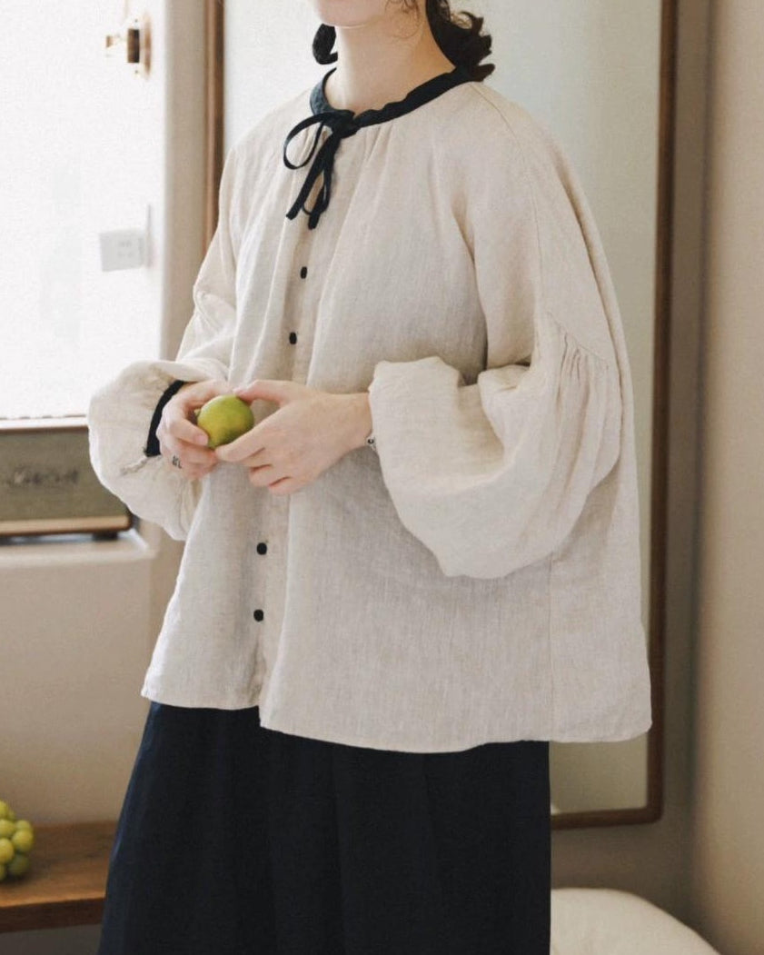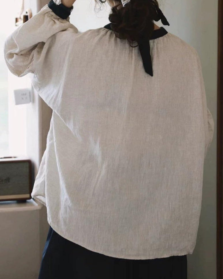 ノルディックバイカラーリボンブラウス 10098