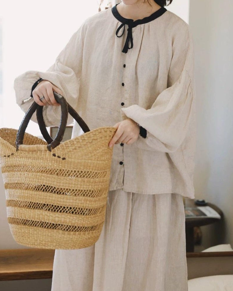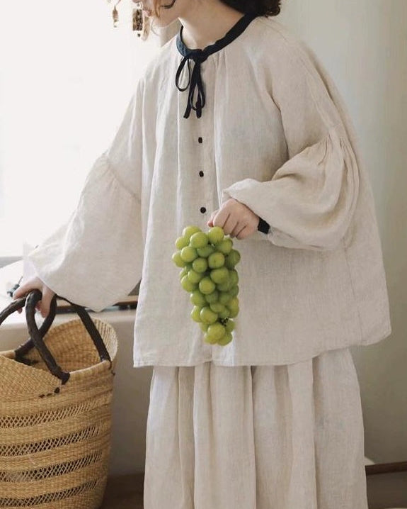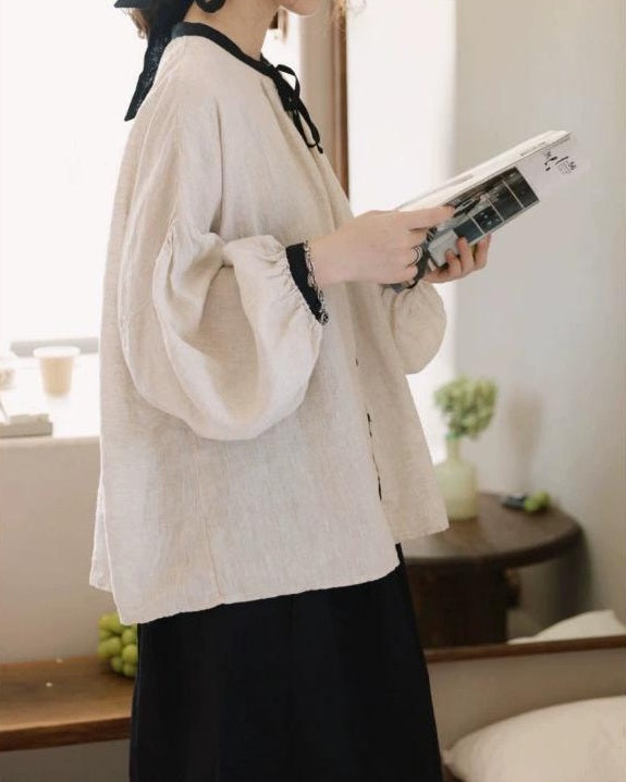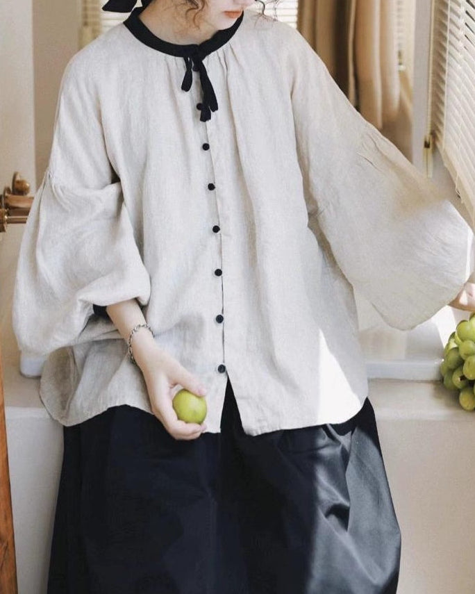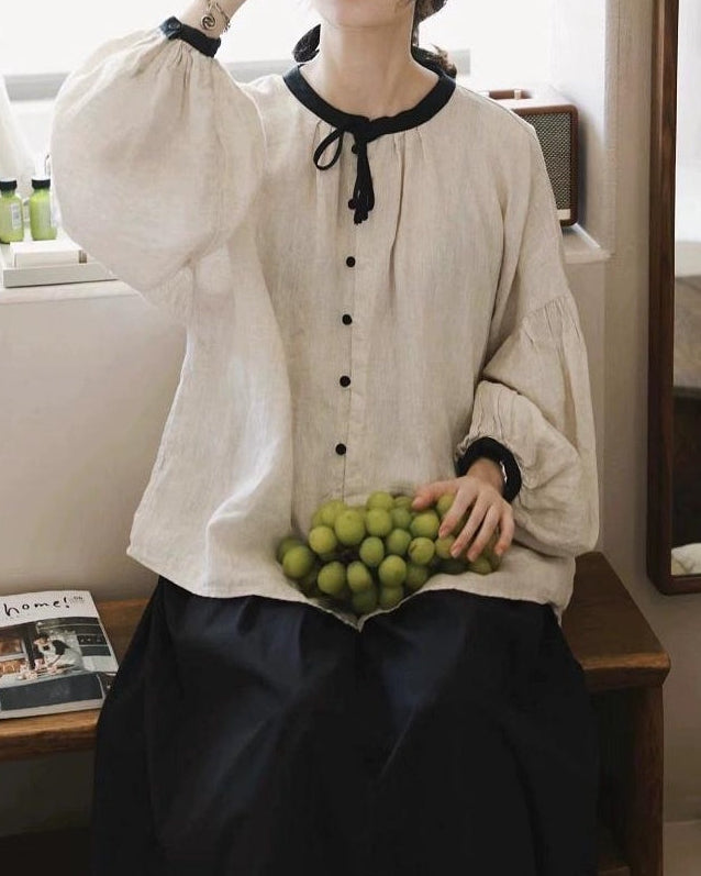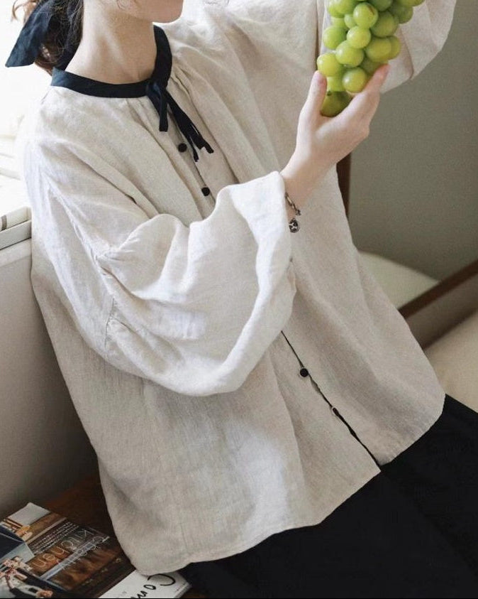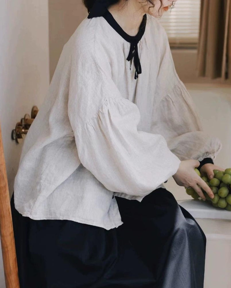 ノルディックバイカラーリボンブラウス 10098