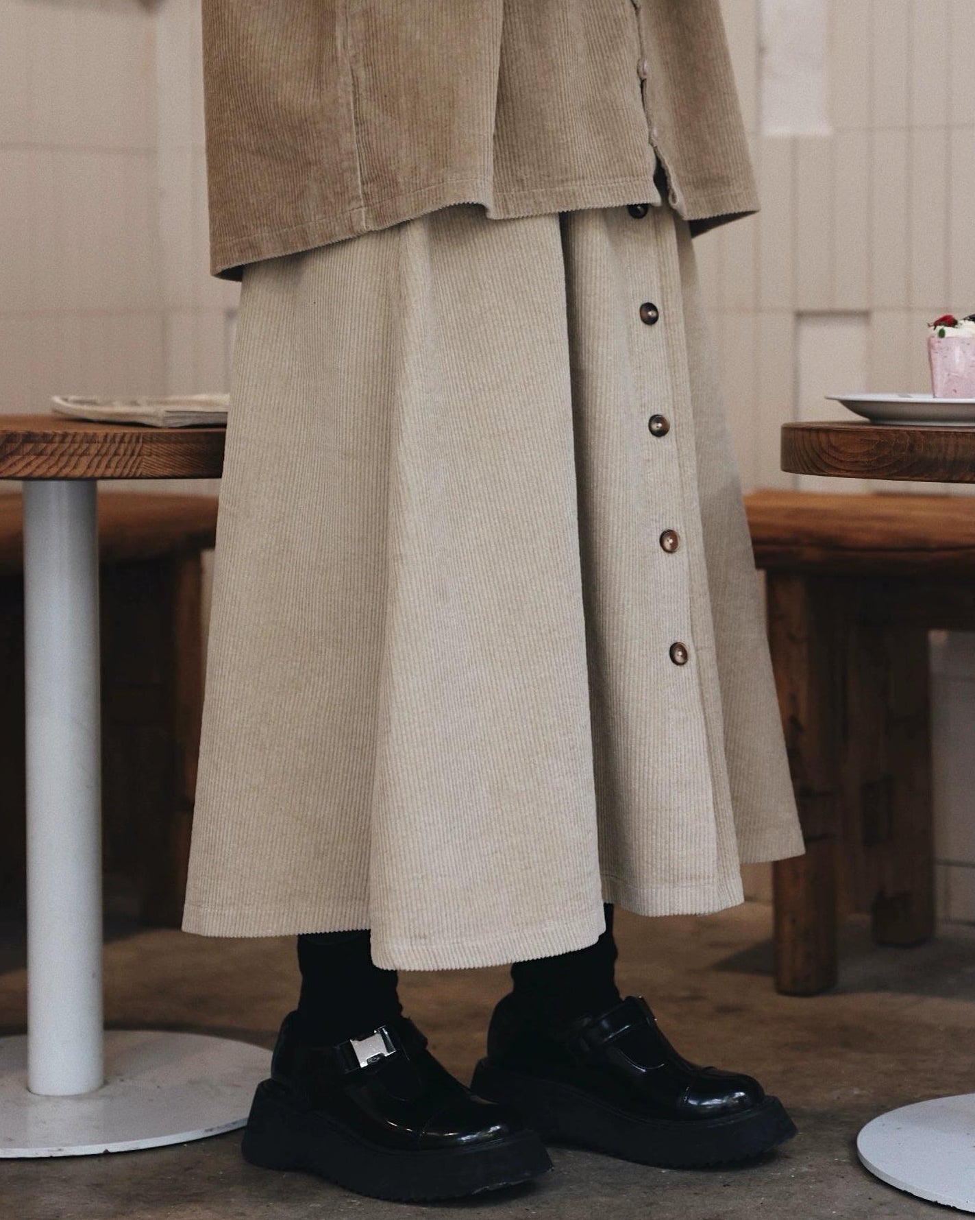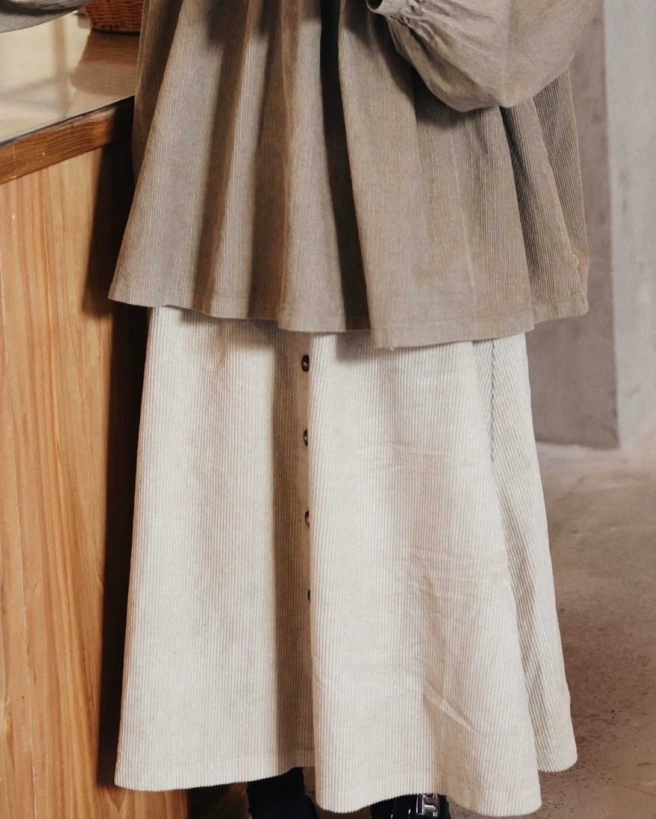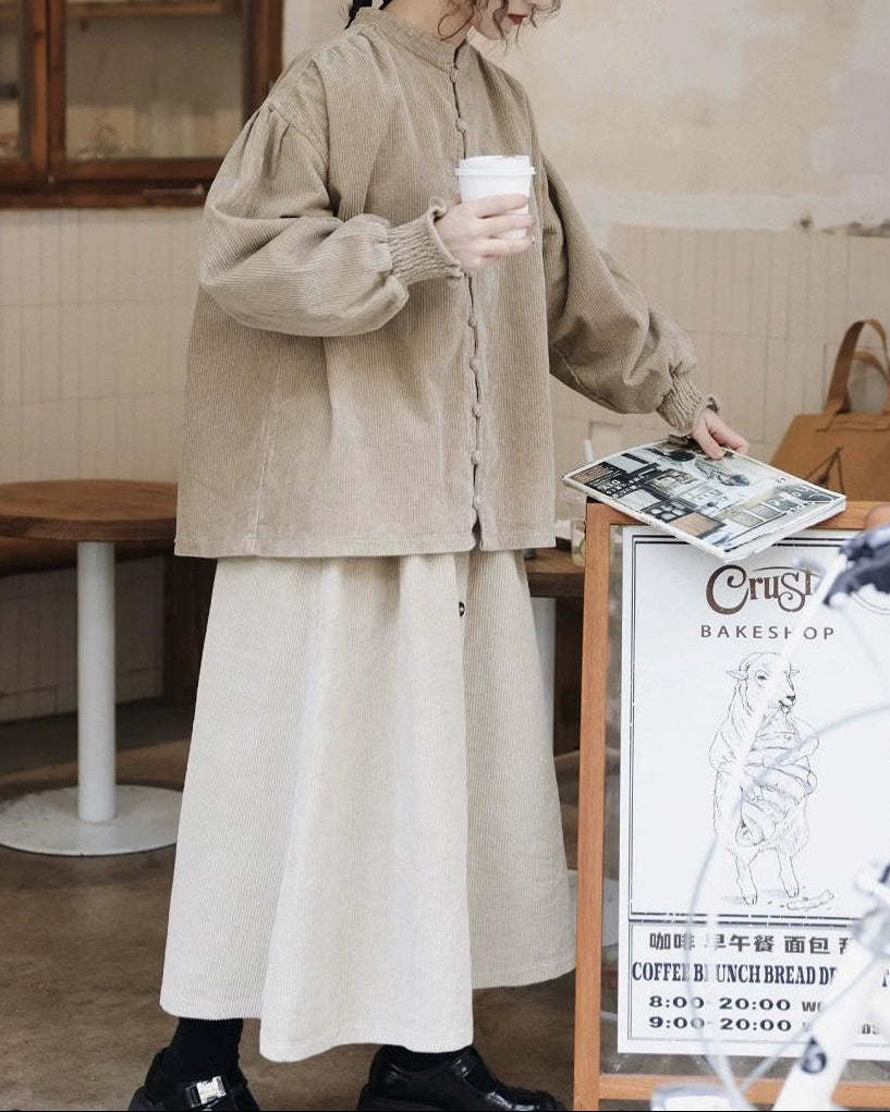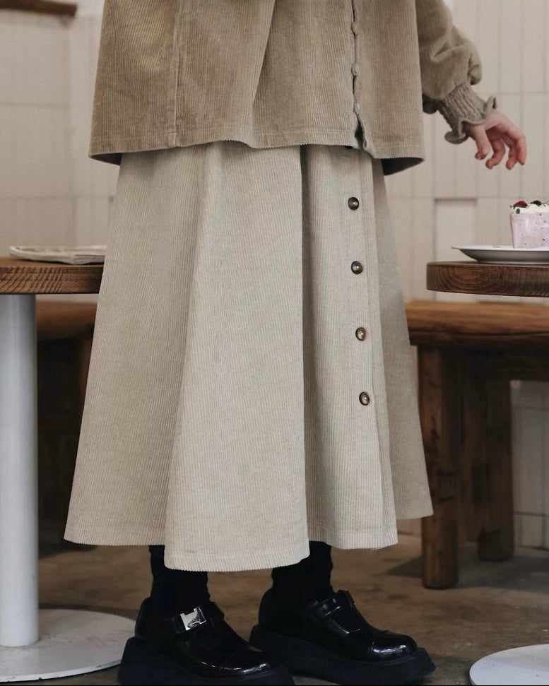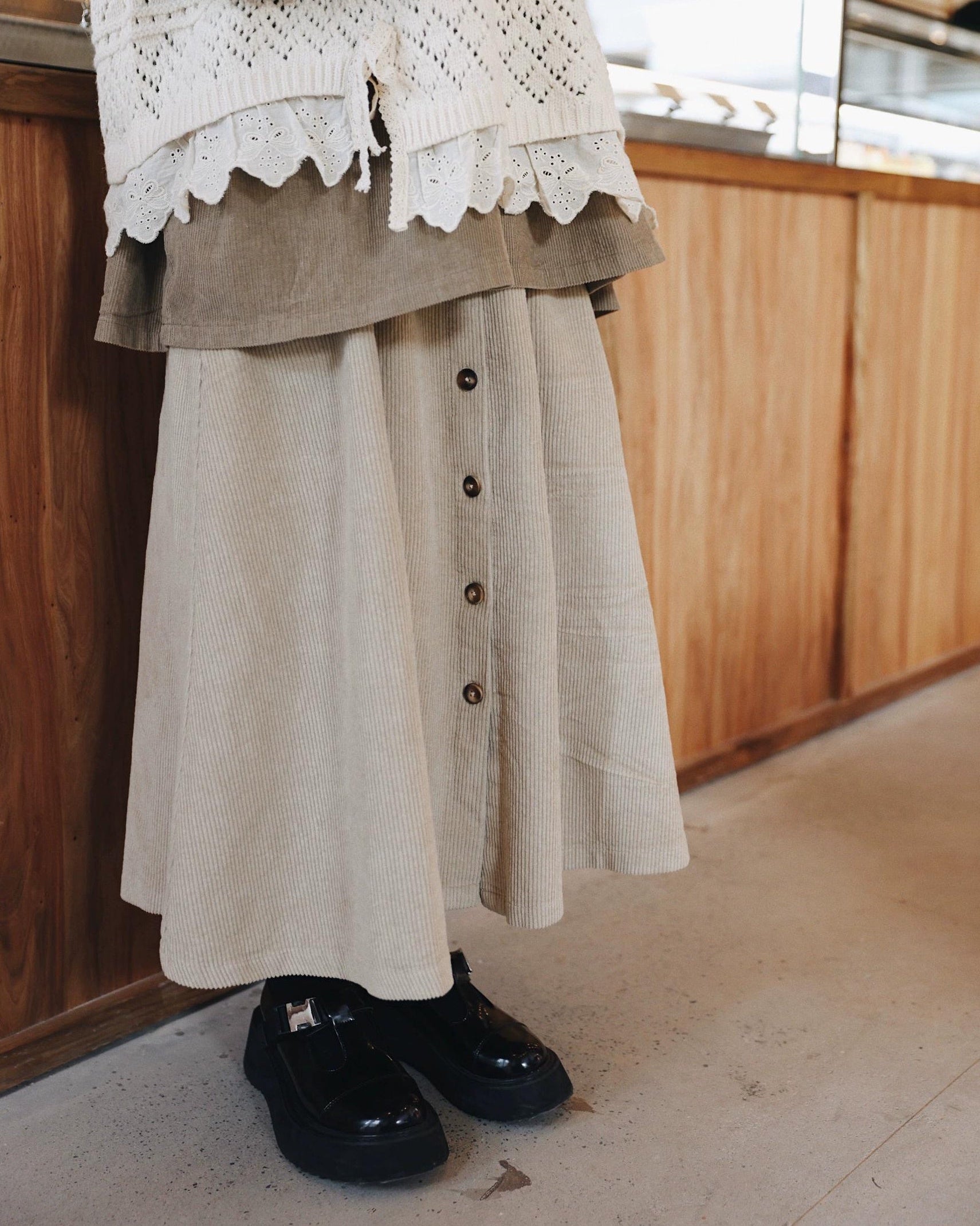 ナチュラルコーデュロイ ボタンミディスカート 10104