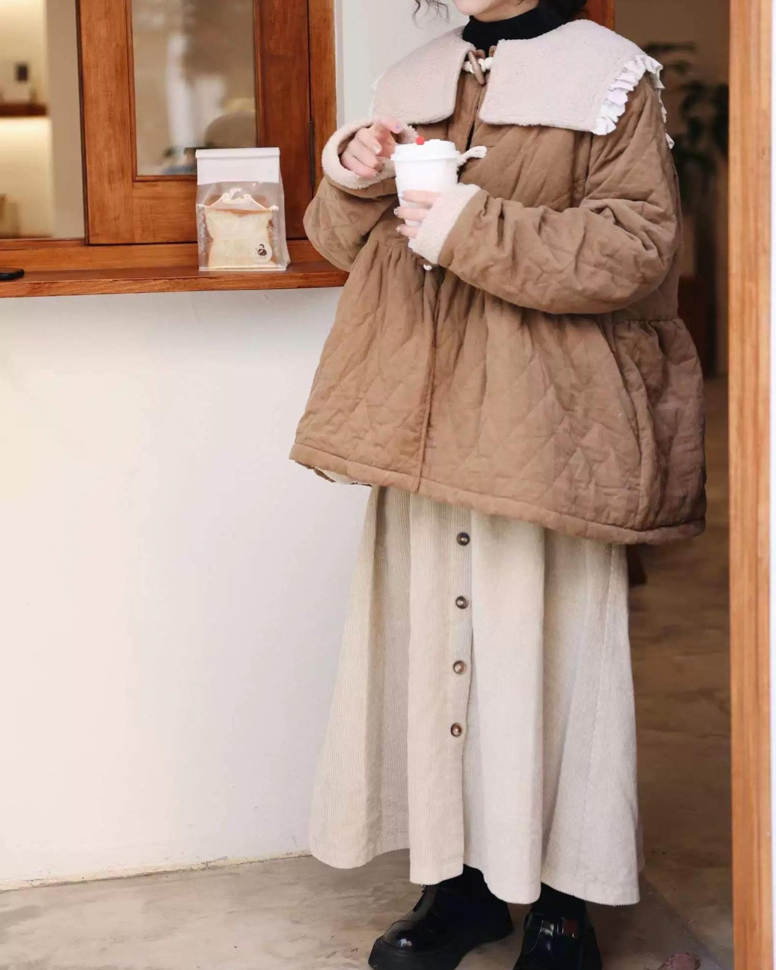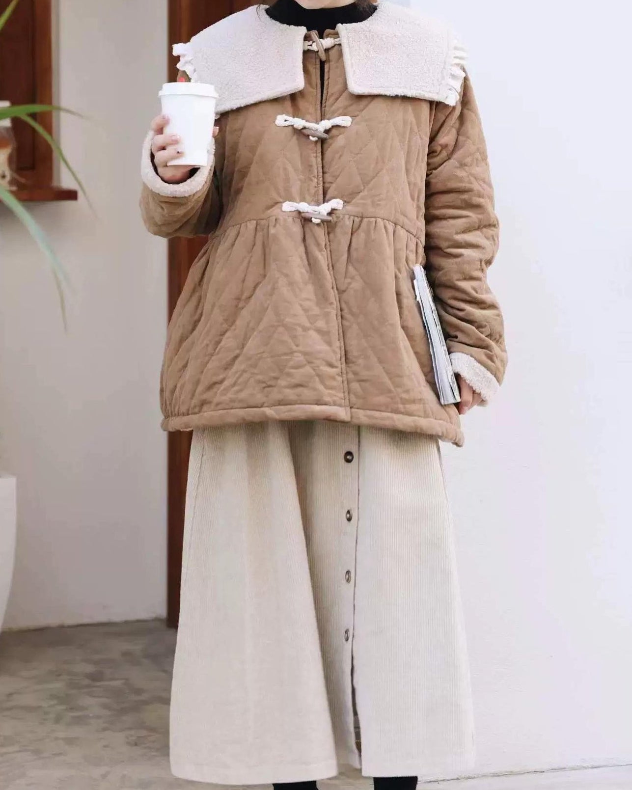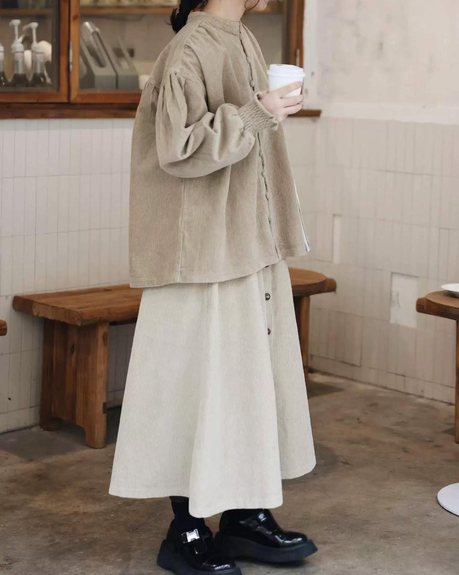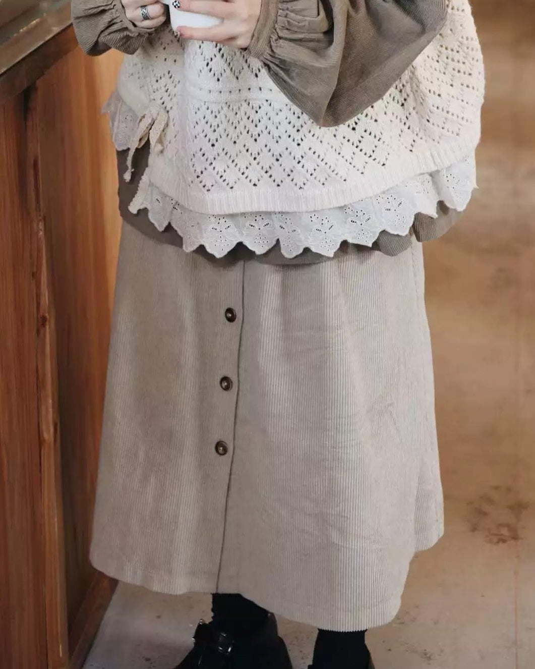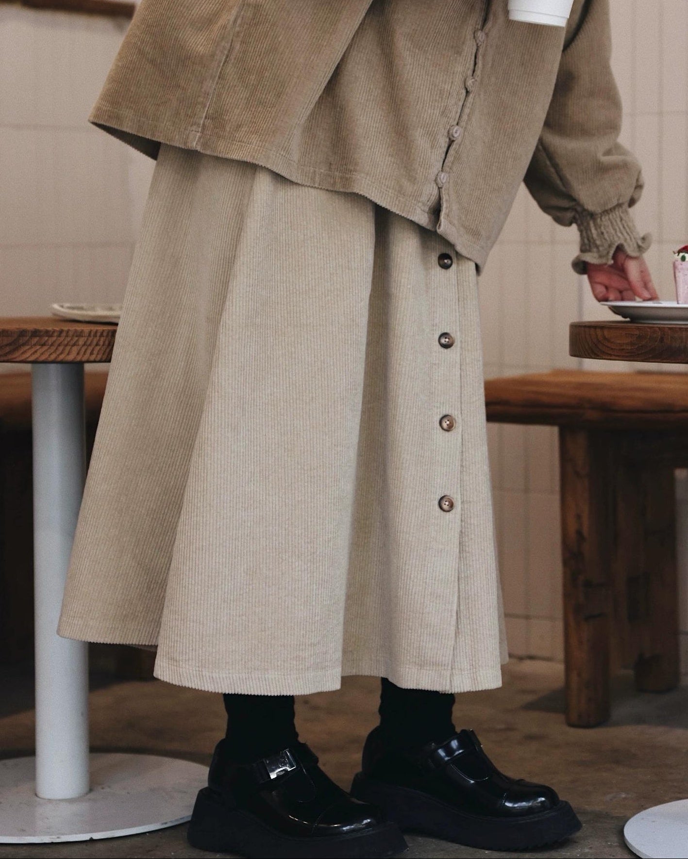 ナチュラルコーデュロイ ボタンミディスカート 10104
