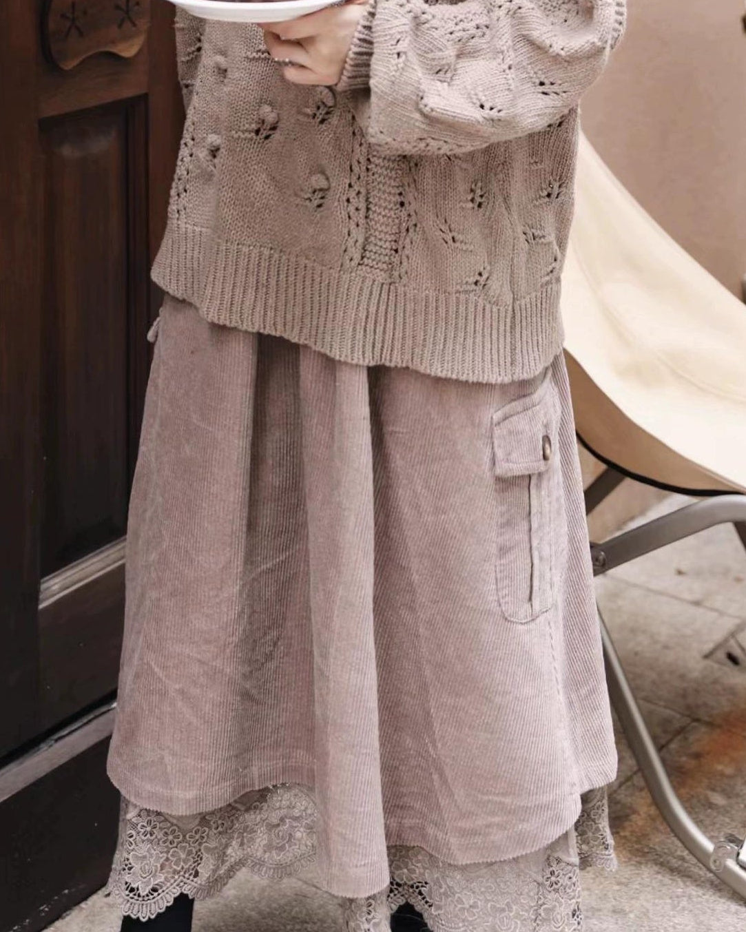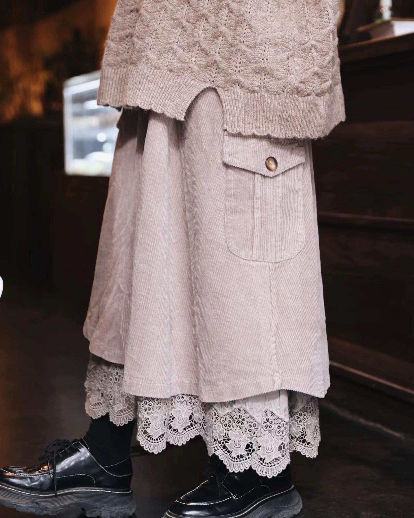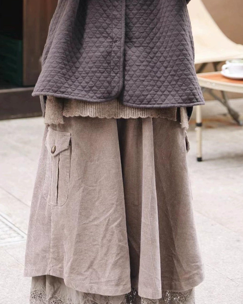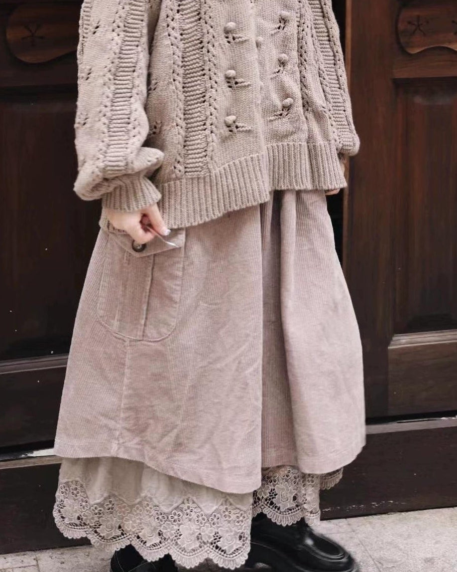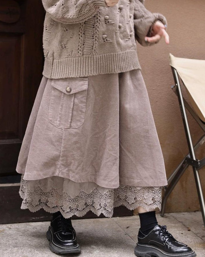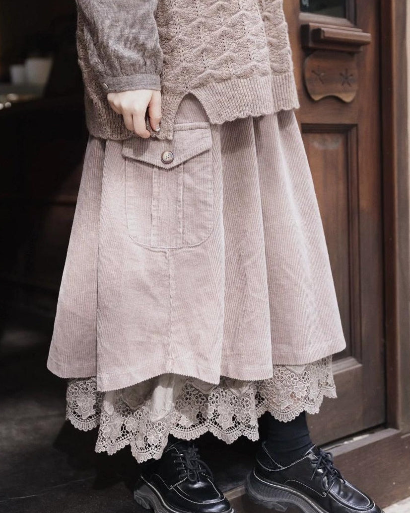 レトロポケットハイウエストコーデュロイスカート 10109