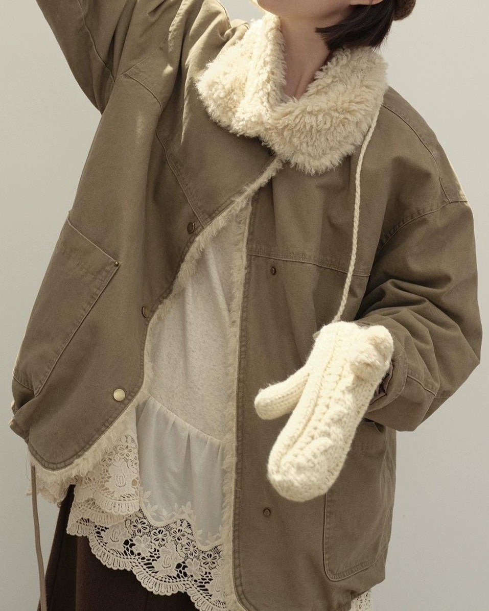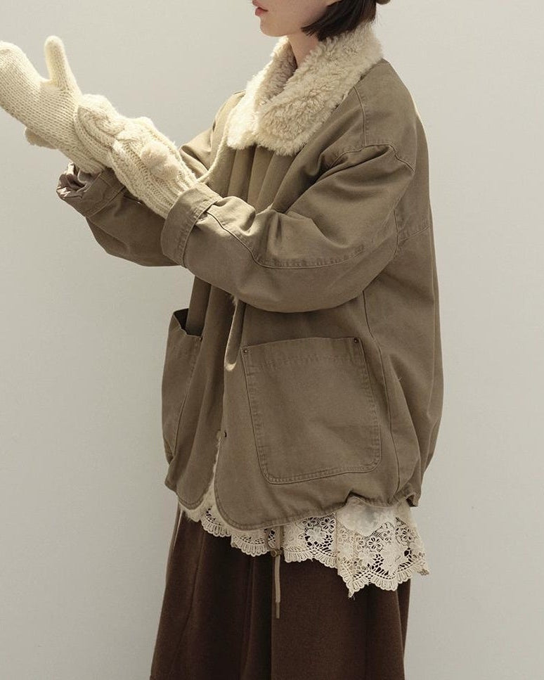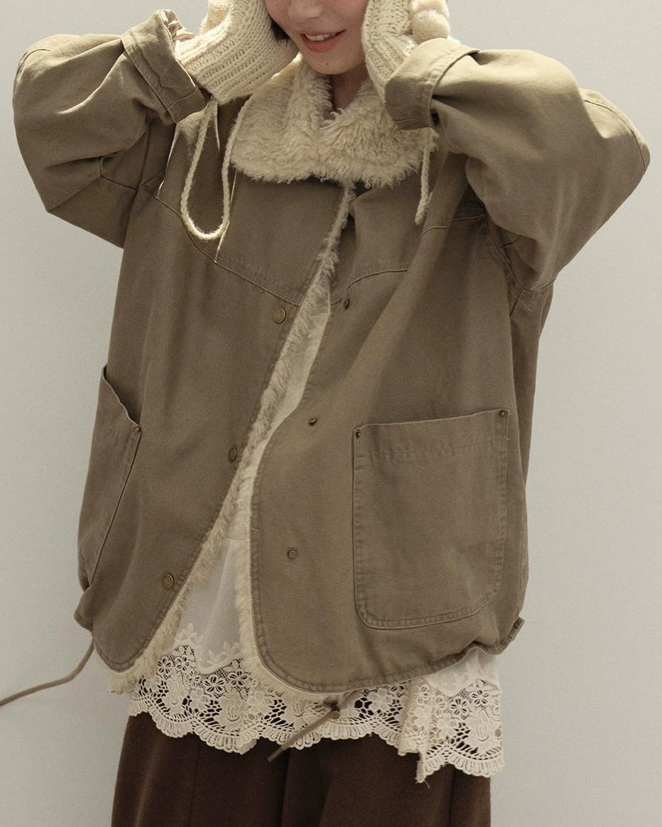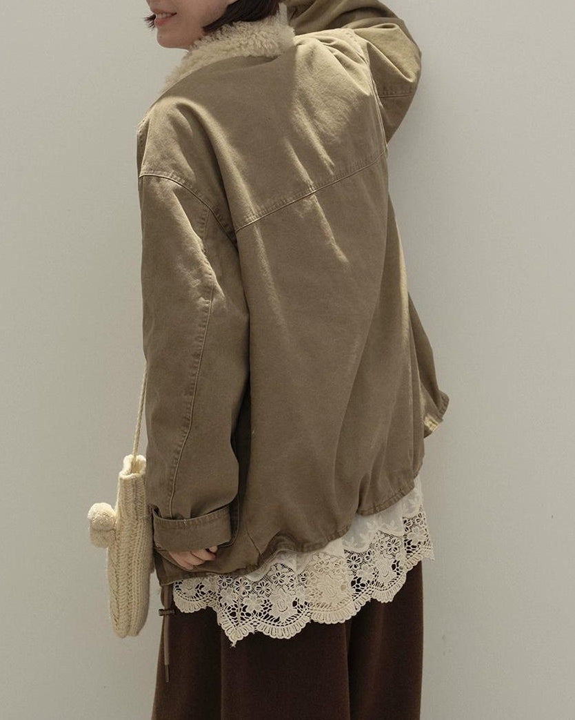 リラックスラペルフリースパーカーコート 10137