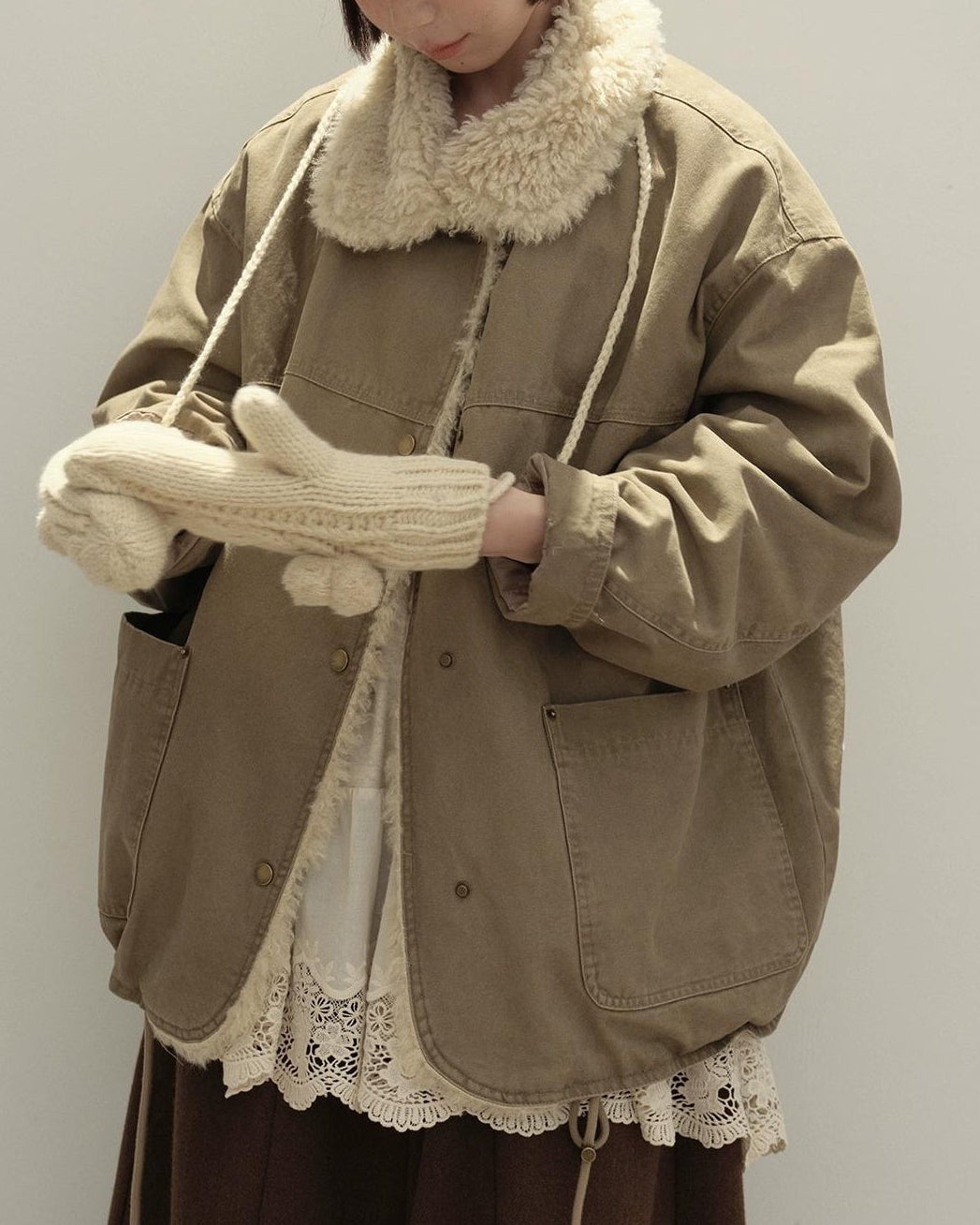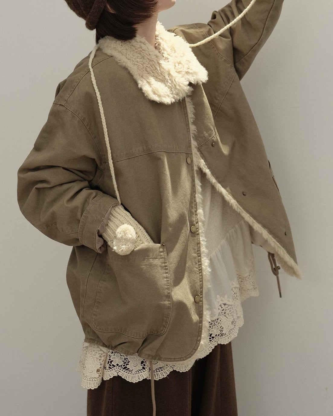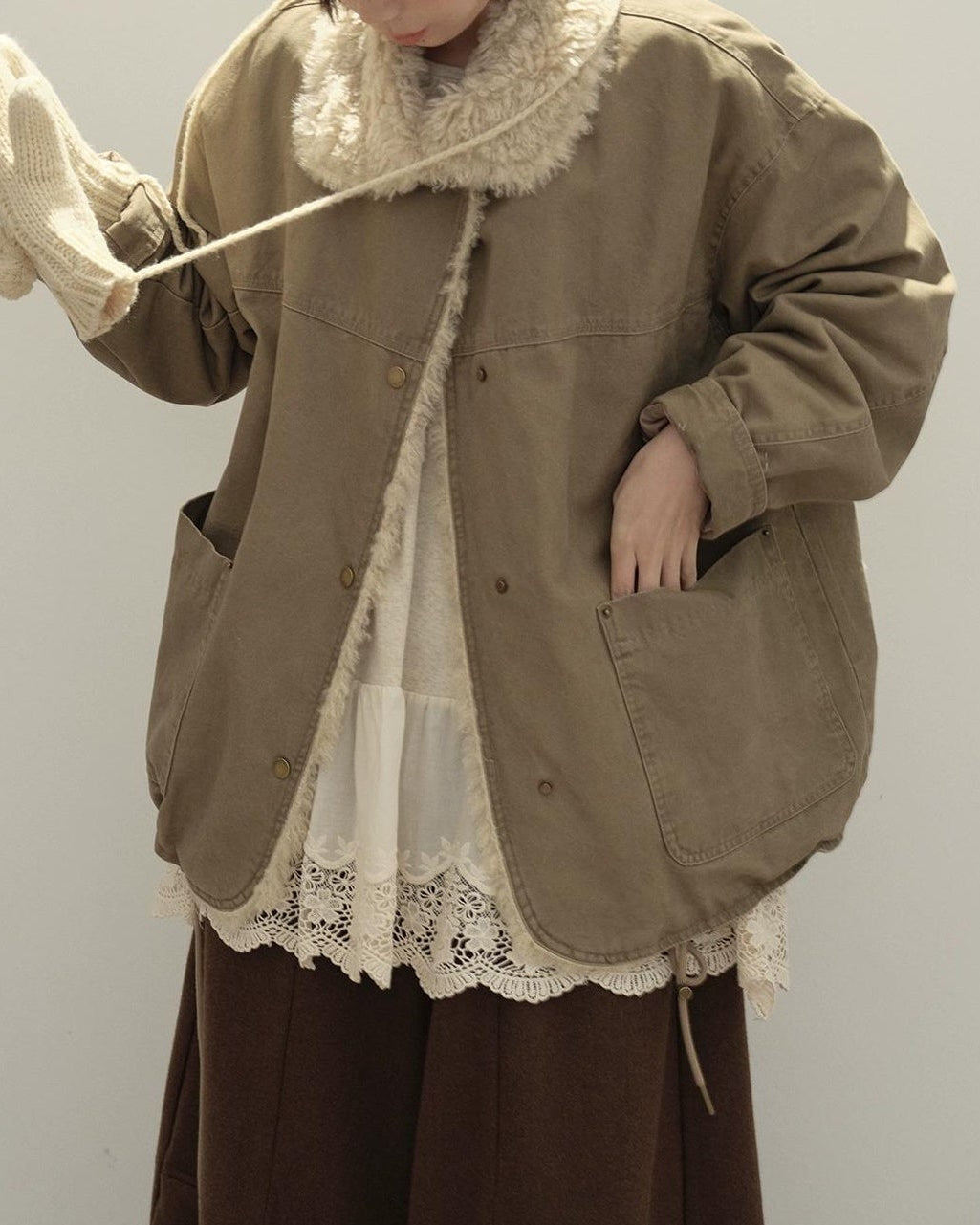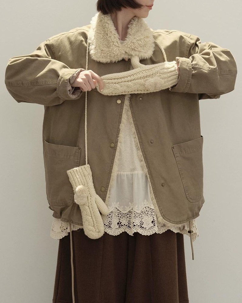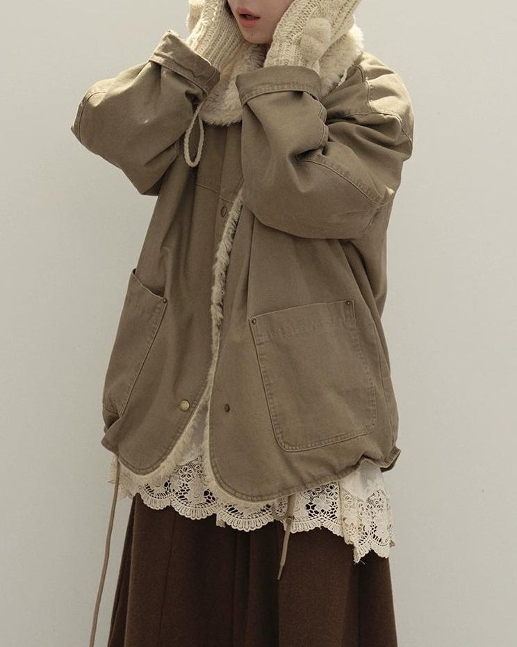 リラックスラペルフリースパーカーコート 10137