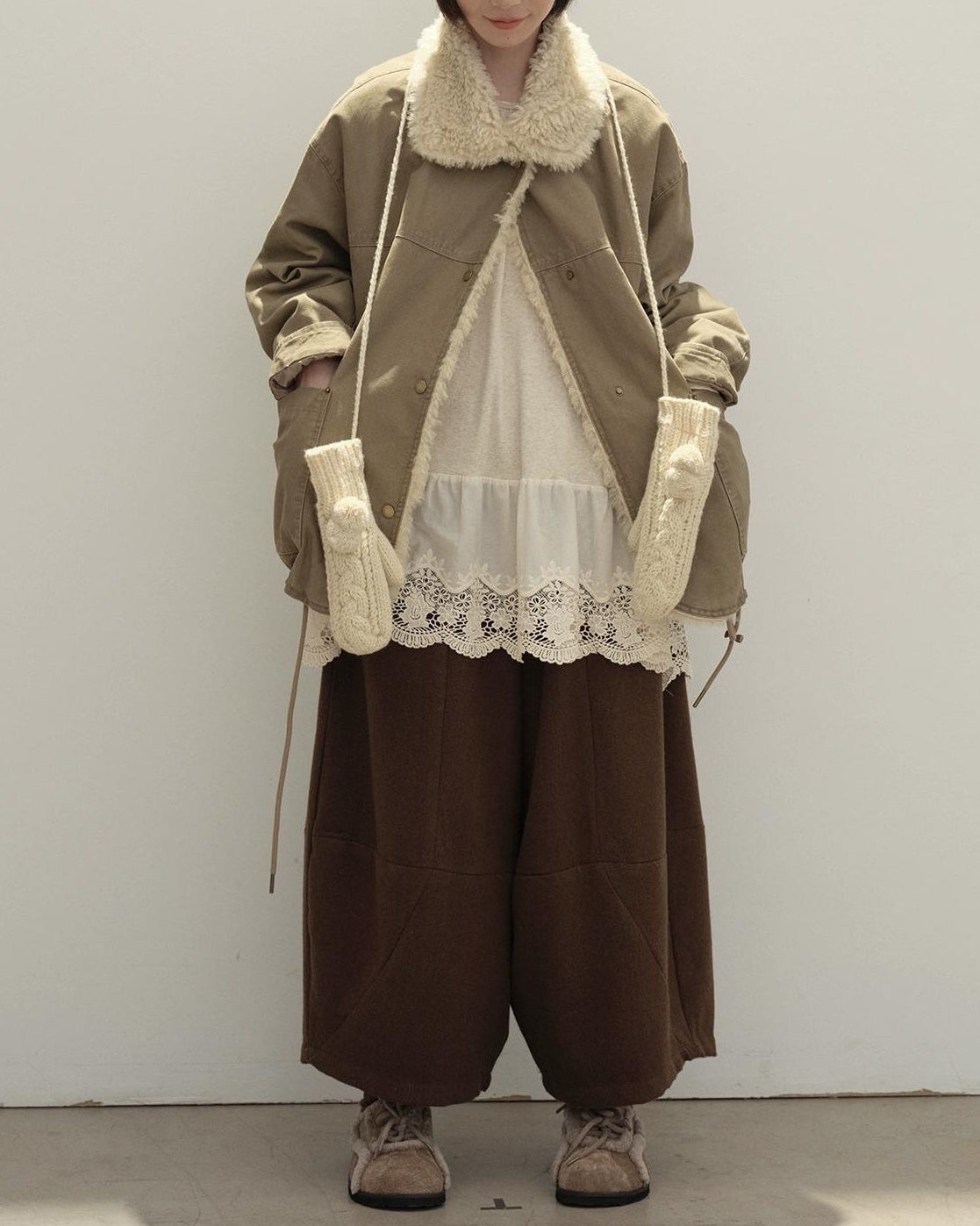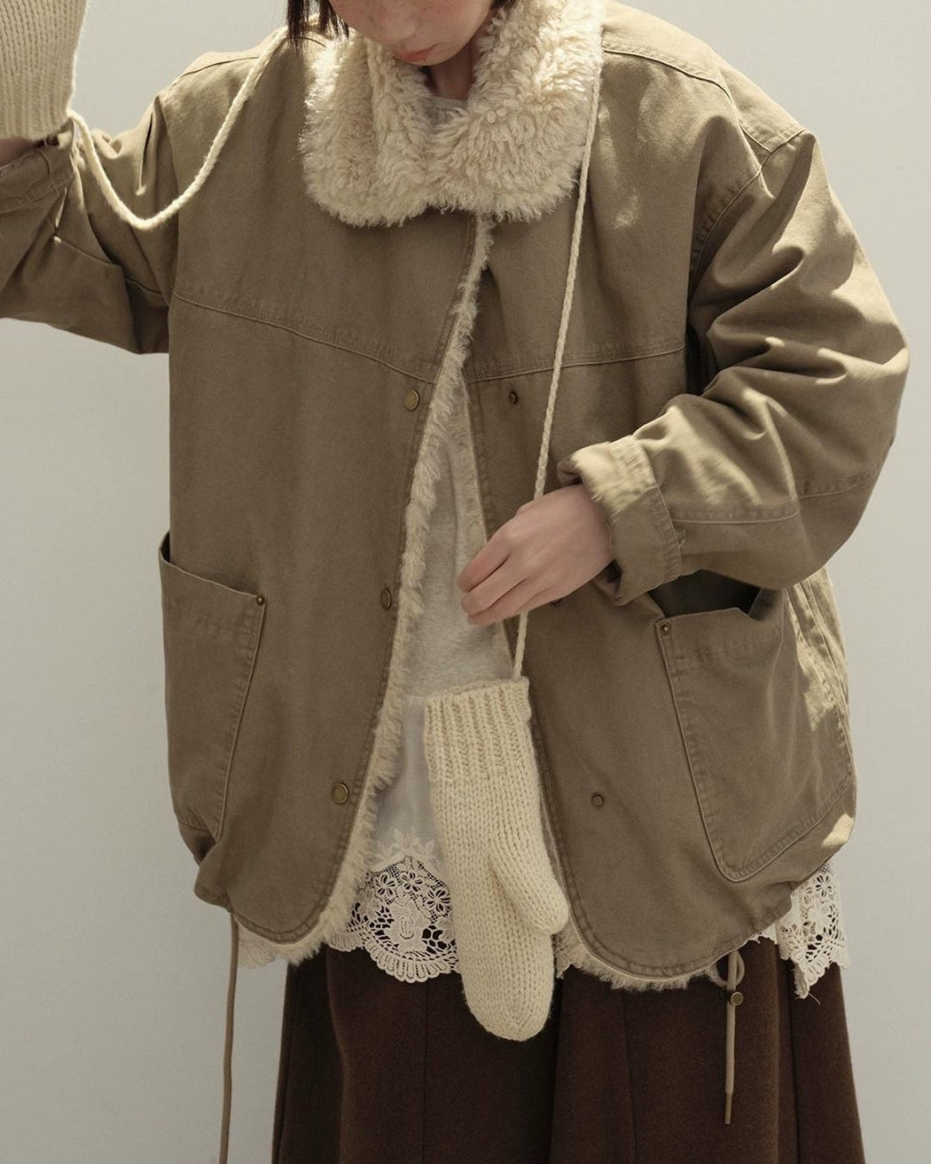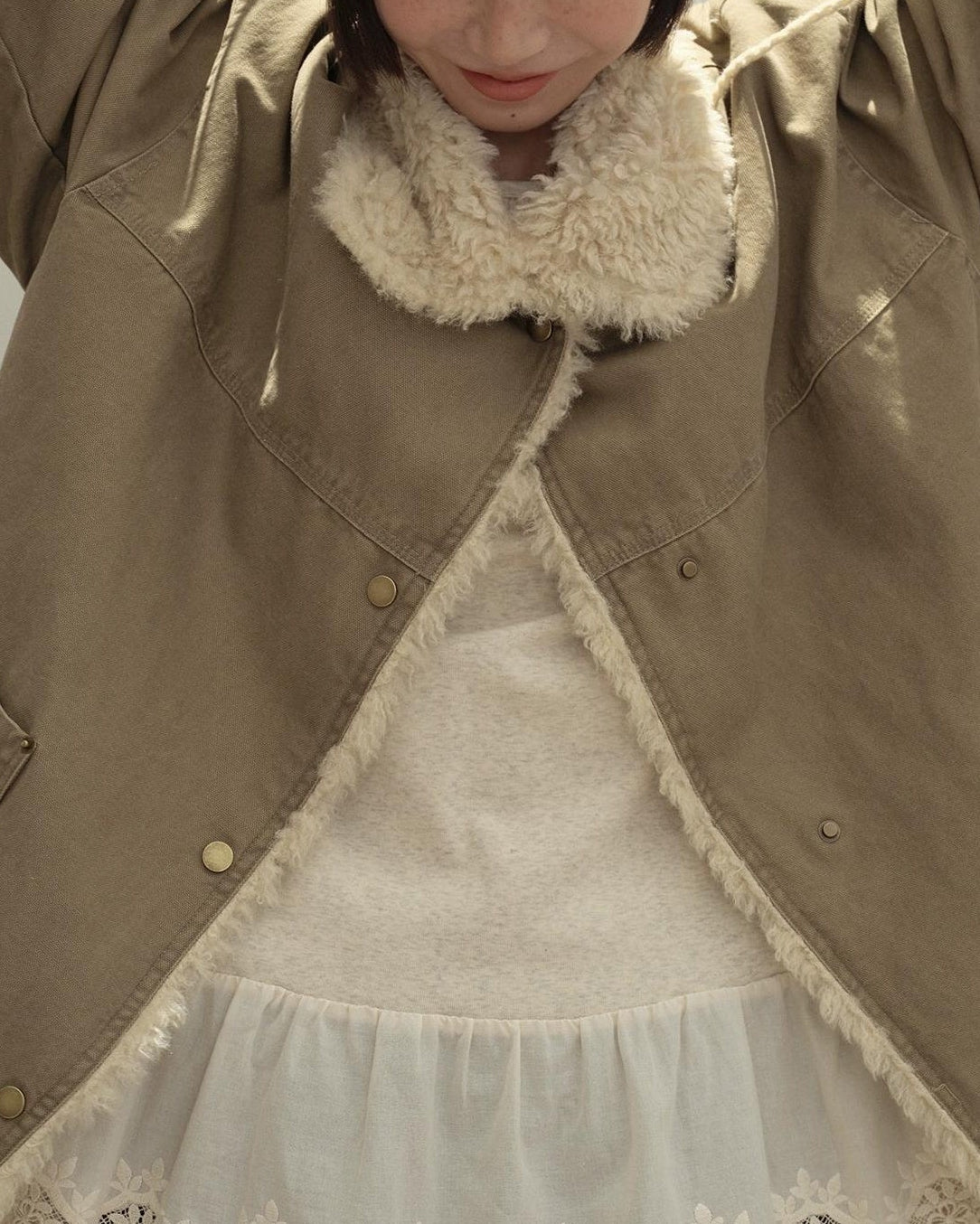 リラックスラペルフリースパーカーコート 10137
