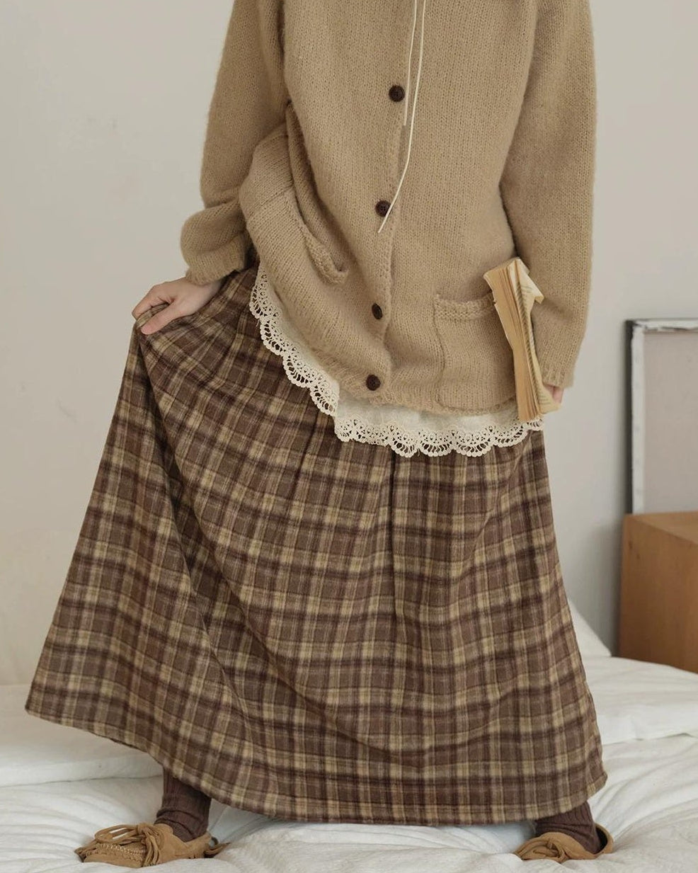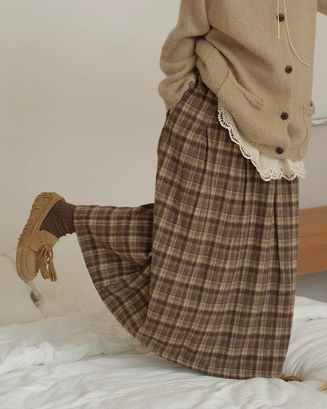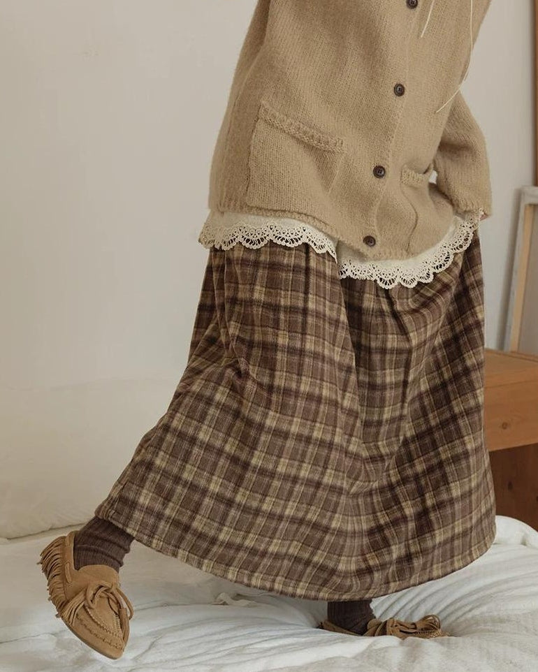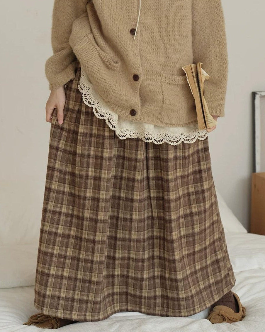 ラテチェックAラインミディスカート 10156