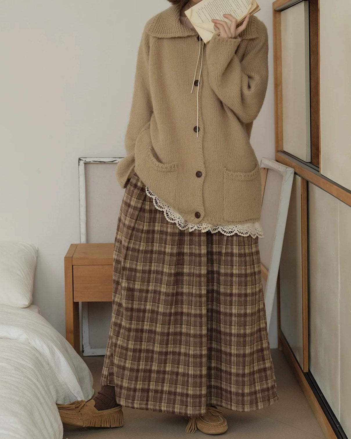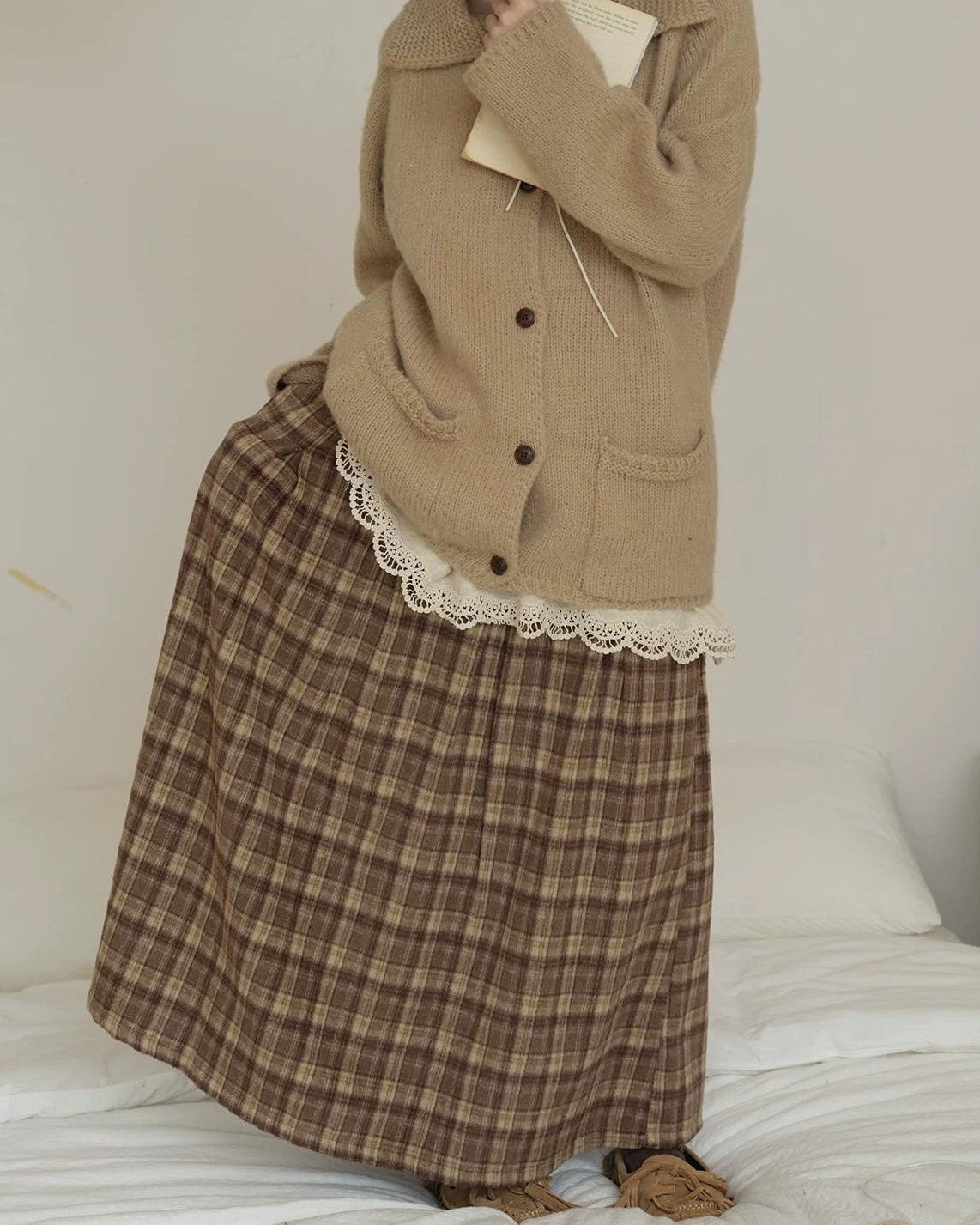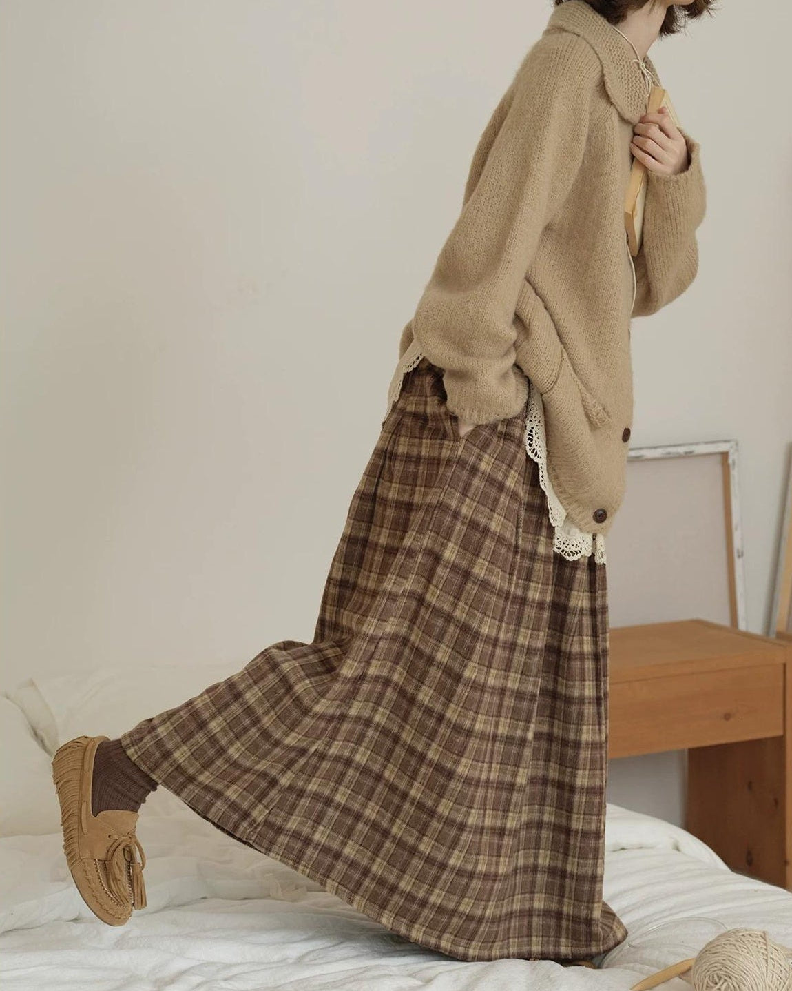 ラテチェックAラインミディスカート 10156